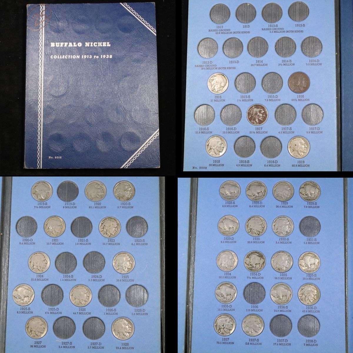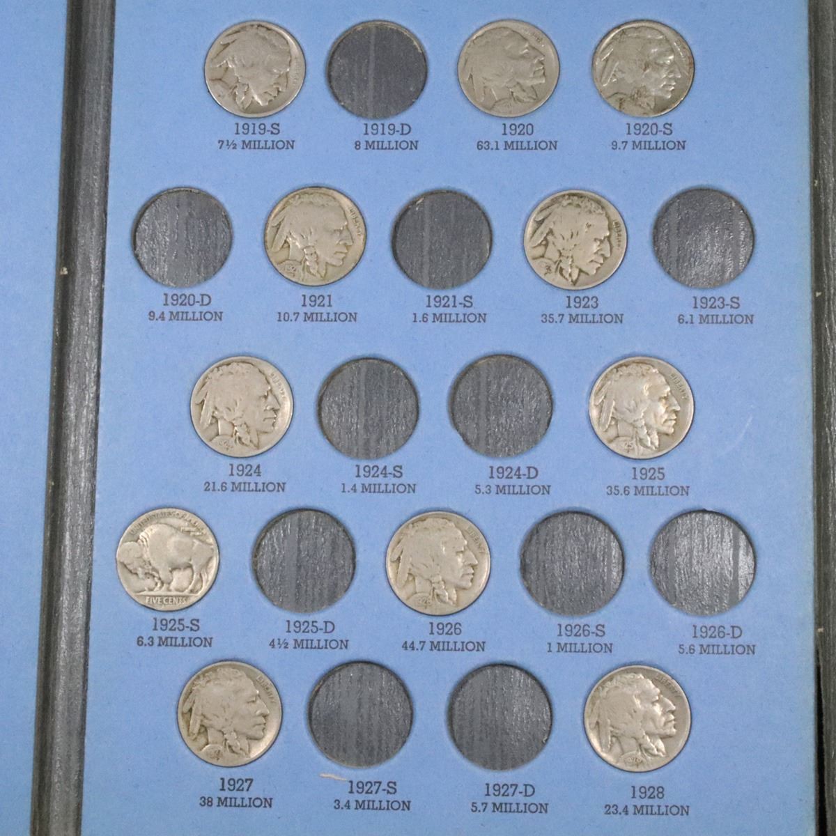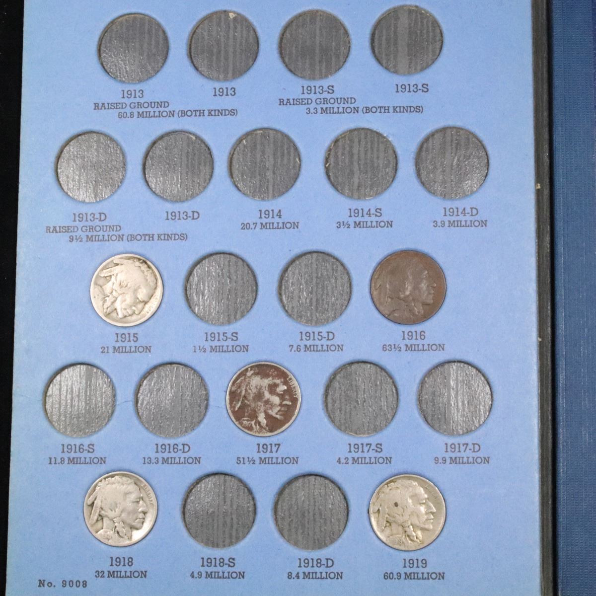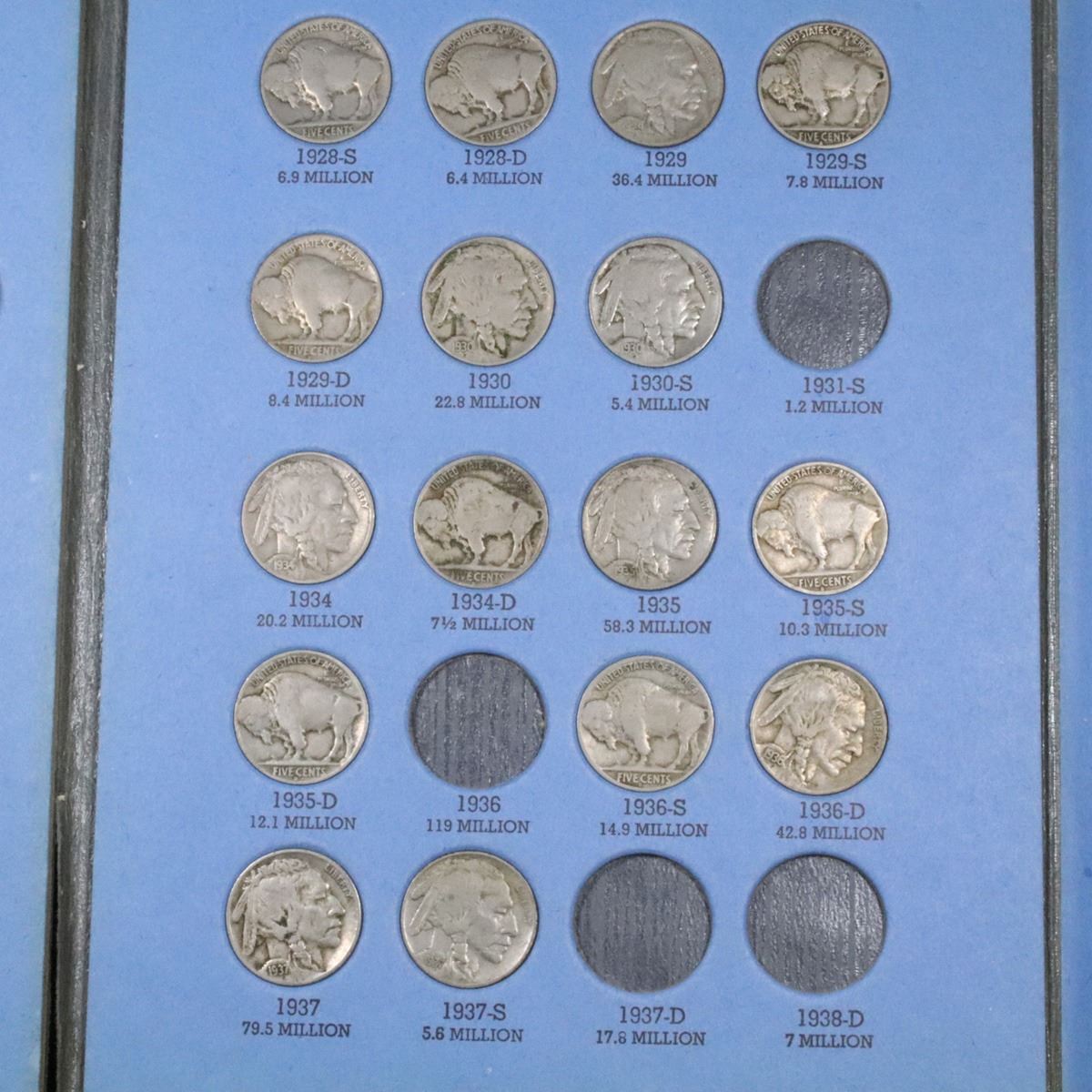 Partial Buffalo Nickel book 1915-1937 32 coins . .. A nice partial Buffalo Nickle set in a Whitman Book. Include coins from 1915-1937. It also includes the 1919-s, 1920-s, 1921-p, 1925-s, 1928-s, 1928-d, 1929-s, 1929-d, 1930-s, 1934-d,. A Fantastic grouping of 32 coins.
