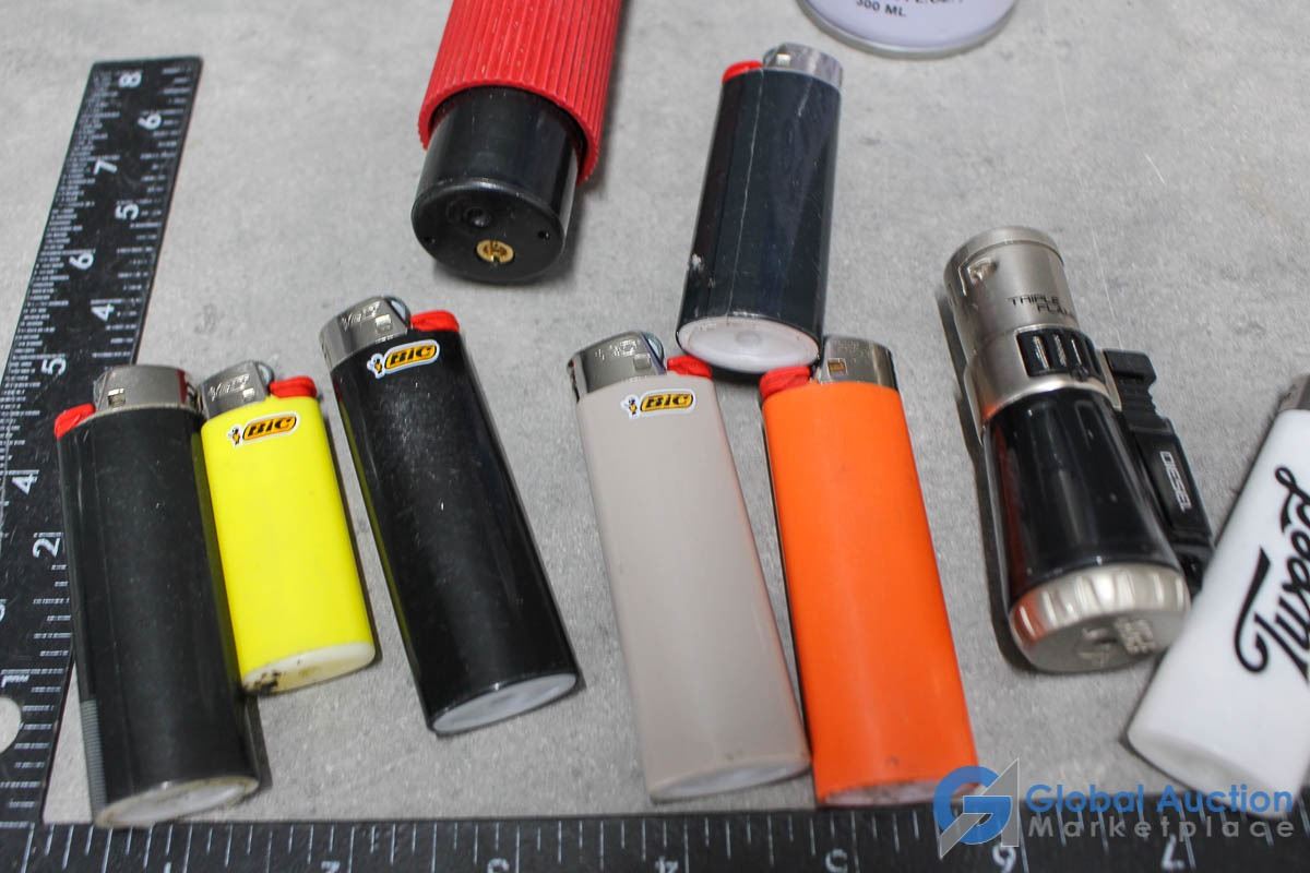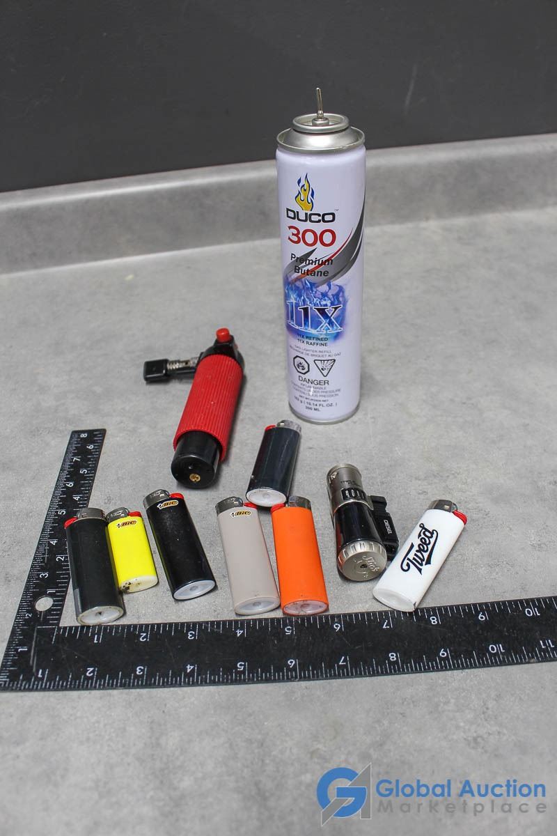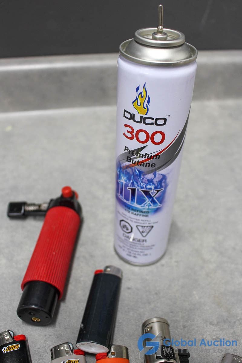 Partial Can of Butane, Small Torch & Misc Lighters