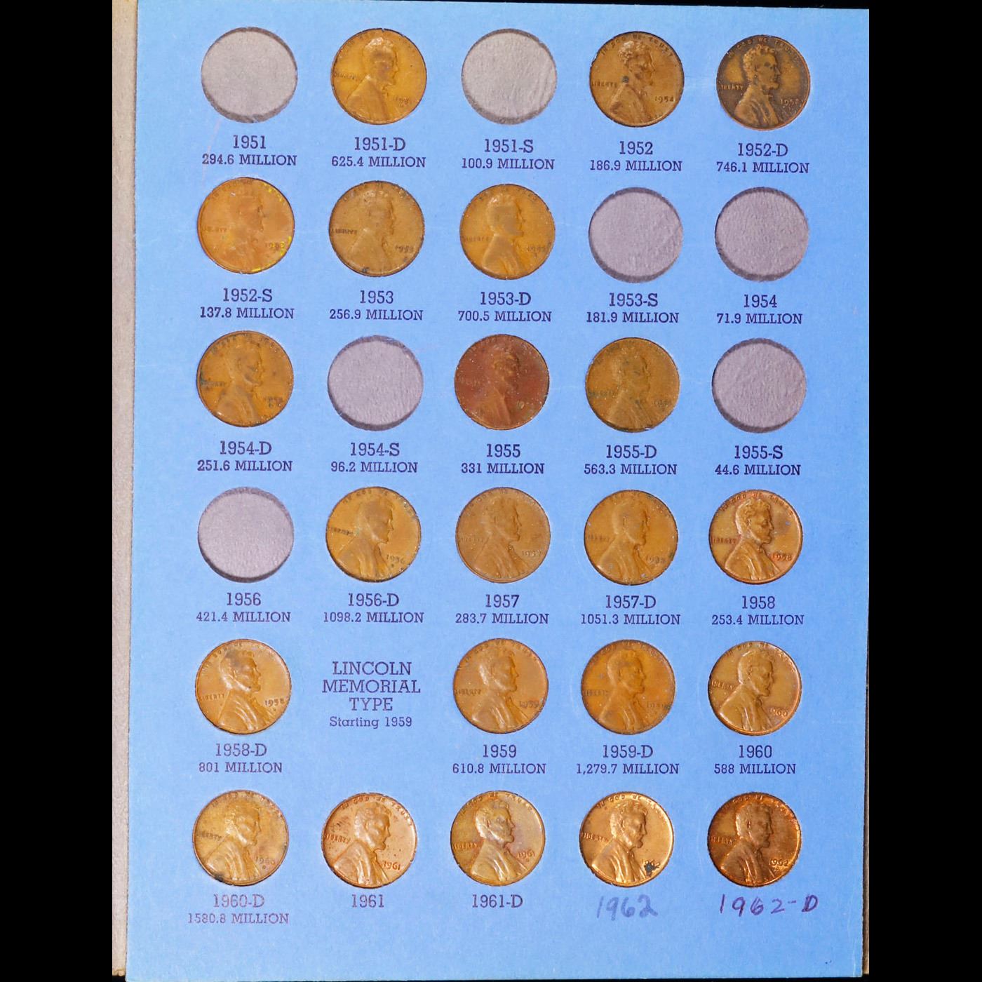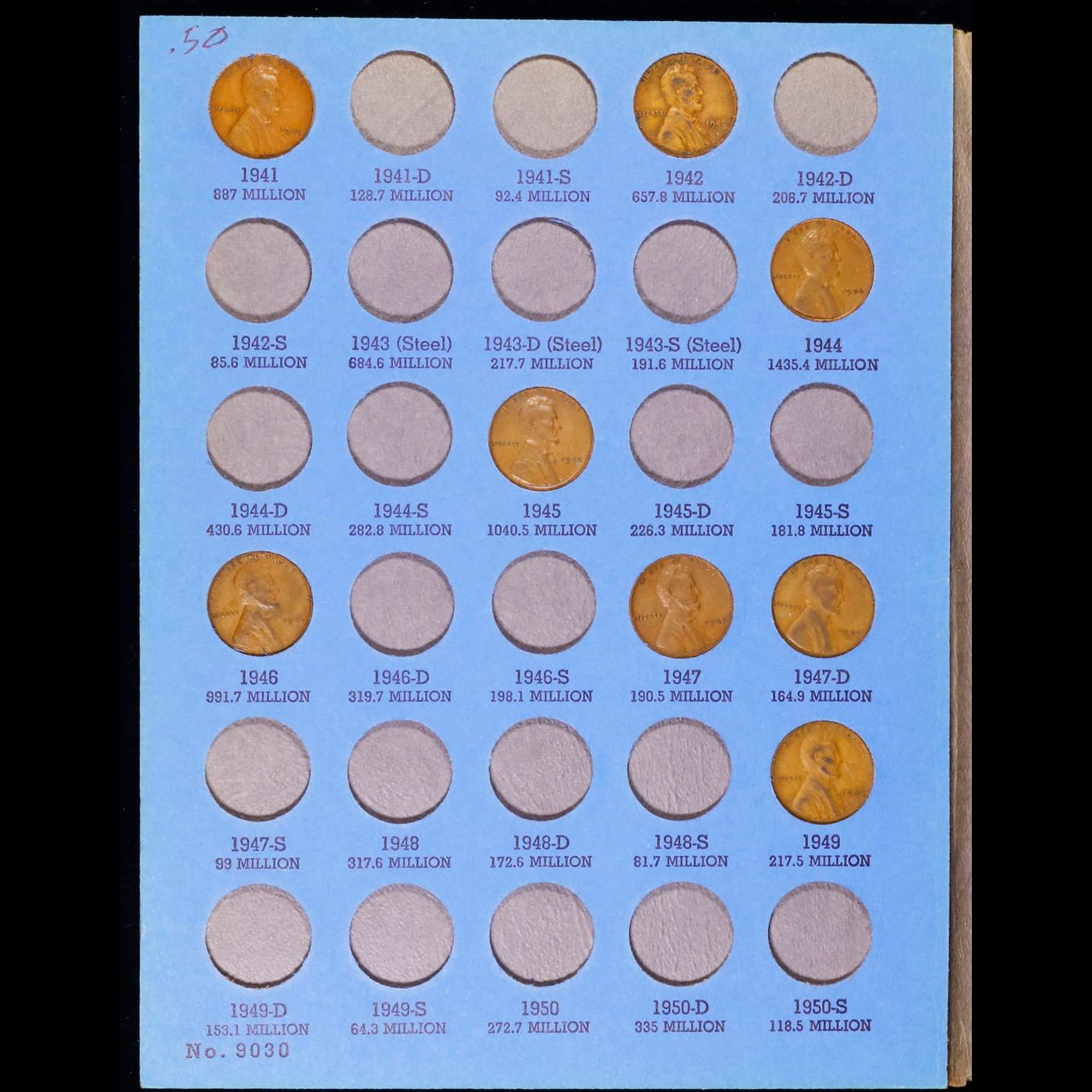Partial Complete Lincoln 1c Whitiman Album, 1941-1961, 33 coins in Total