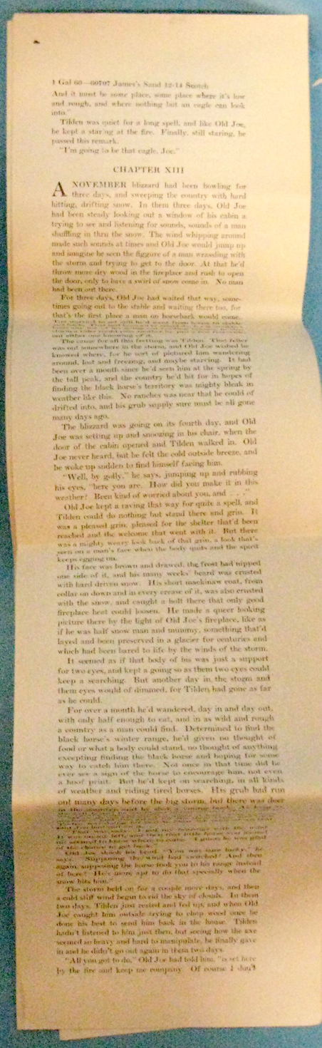Galley proofs are the working copies of a printed mss. for both the writer and publisher. This galley was found in his estate in Billings, Montana on Smokey Lane Ranch after his death in 1942. 24” x 6 ½”, 22 pp. book published in 1929
