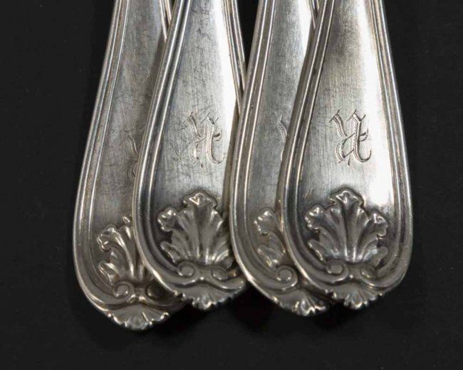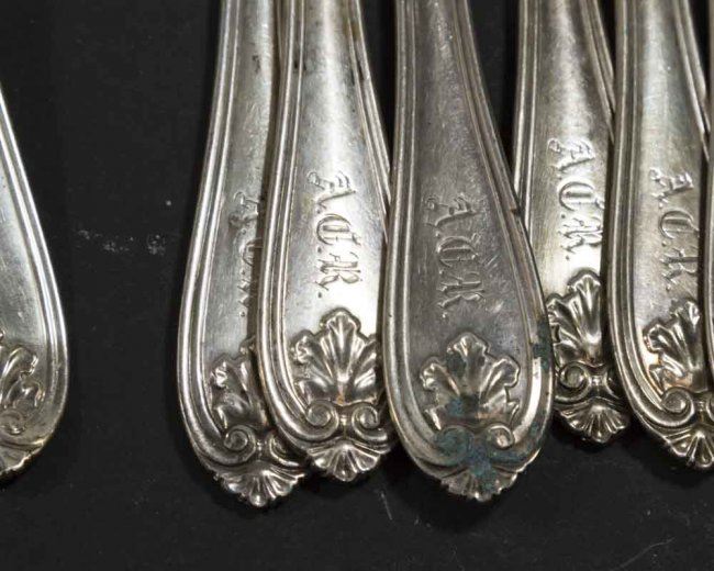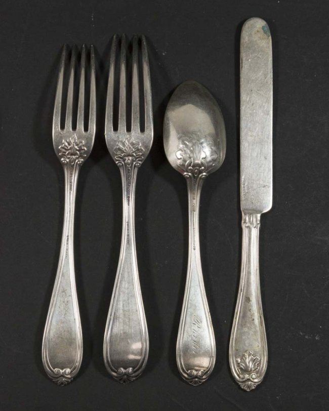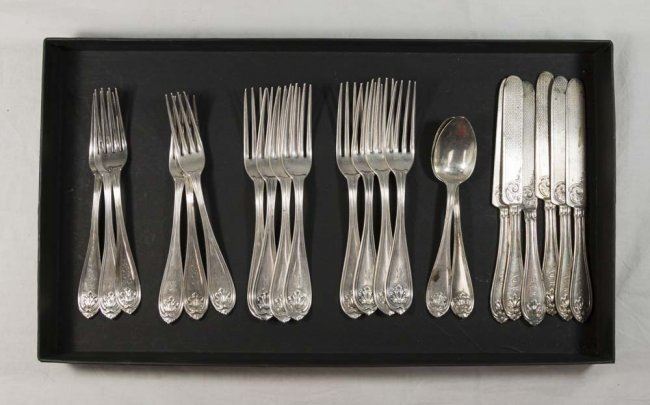 22 pieces including 6 knives approx. 7 1/4" L, 6 forks approx. 6 3/4" L, 8 forks approx. 7", 2 teaspoons. Approx. 728 g, 23.4 ozt. (4139)