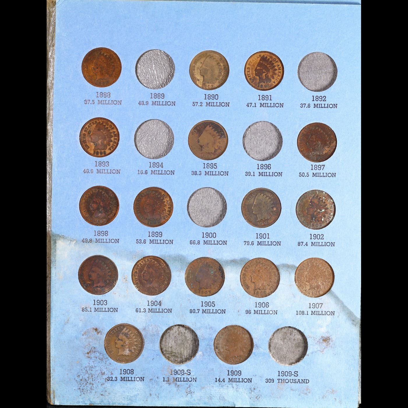 Partial Indian Cent 1c Whitman Album, 1959-1909 26 Coins