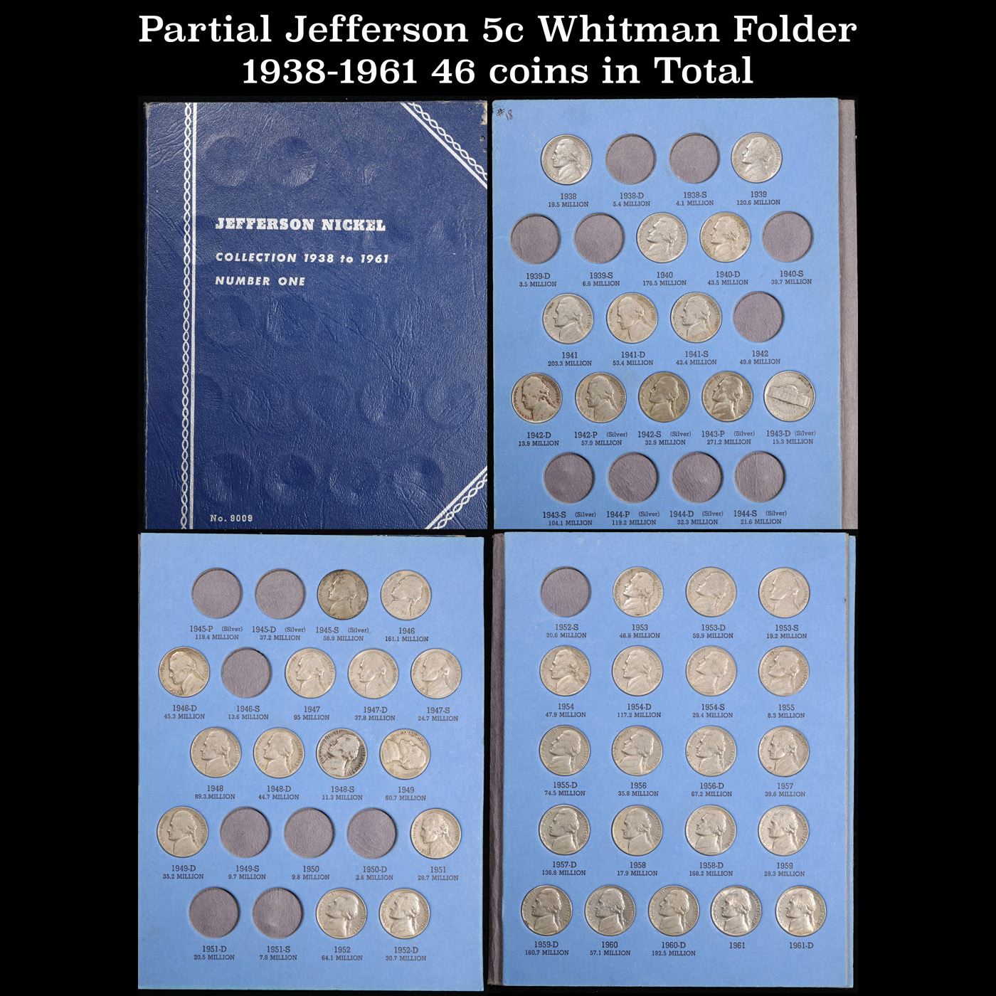 Partial Jefferson 5c Whitman Folder, 1938-1961 46 coins in Total. All coins encased in a Whitman Coin Album. Date Range from 1938-1961. A Nice grouping of 46 coins.