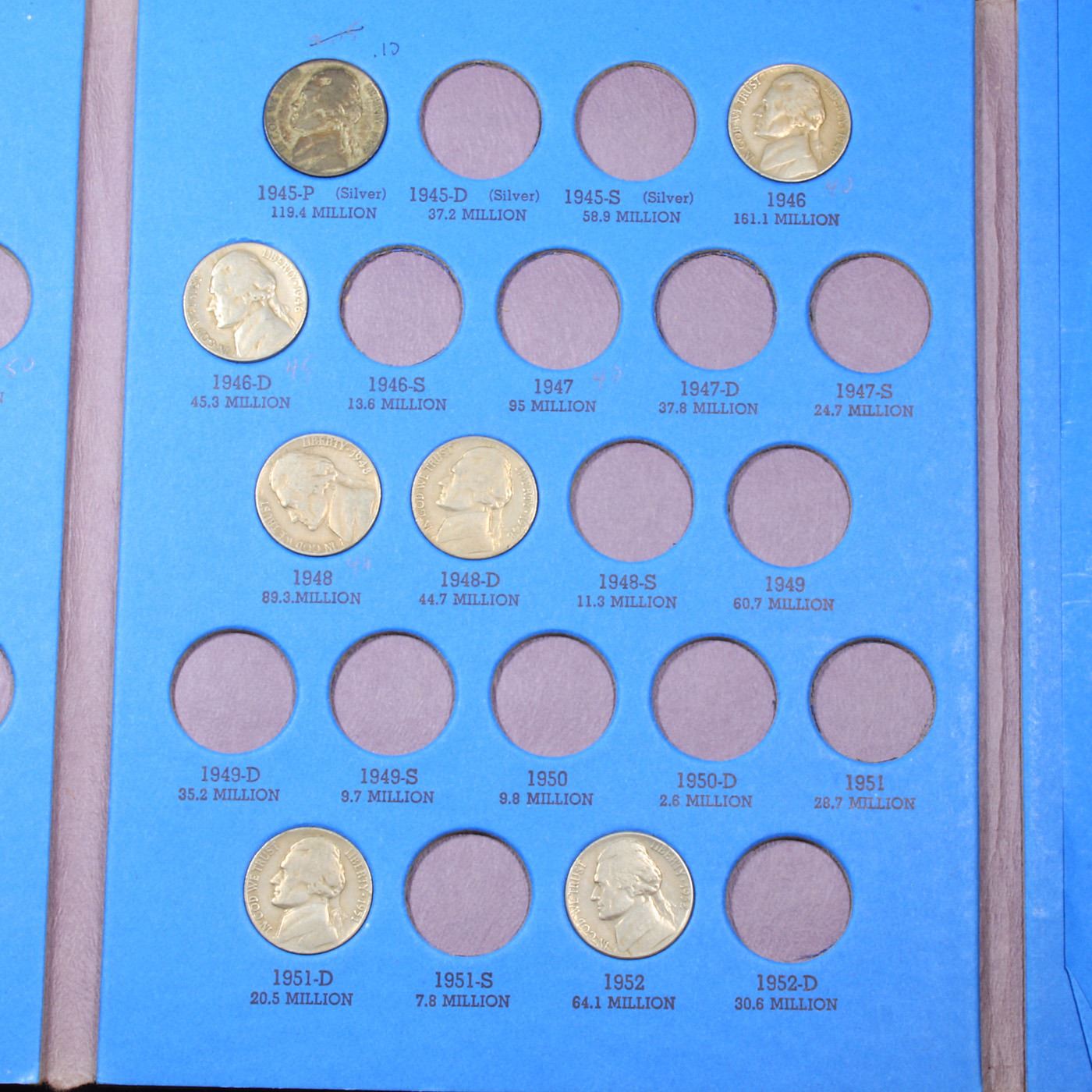 Partial Jefferson Nickel Book 1938-1961 28 coins. A excellent Partial Jefferson Nickel Book. Dates Included range from 1938-1961. All coins encased in a nice Whitman coin book. An Excellent grouping of 28 coins. Includes 4 Silver War Nickels