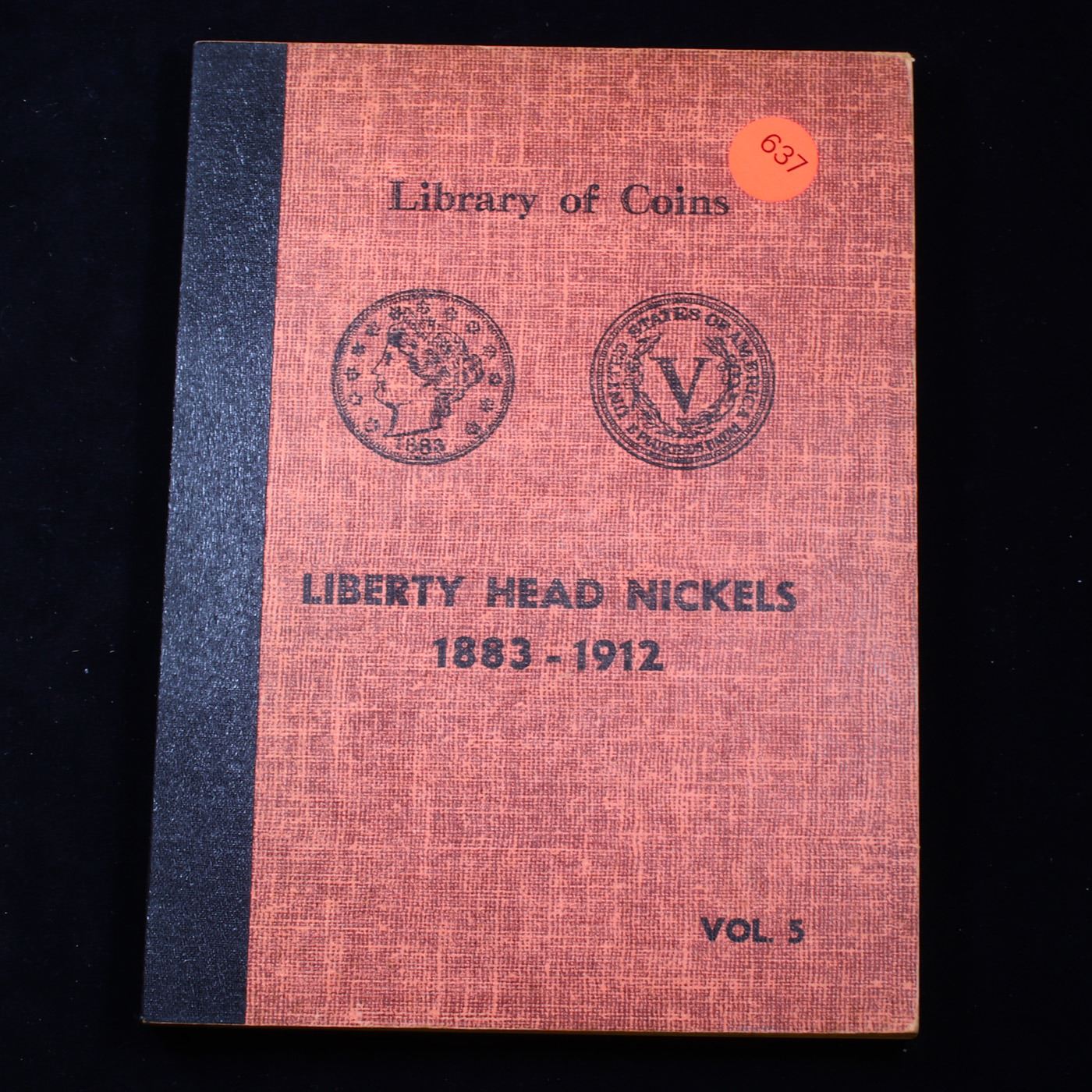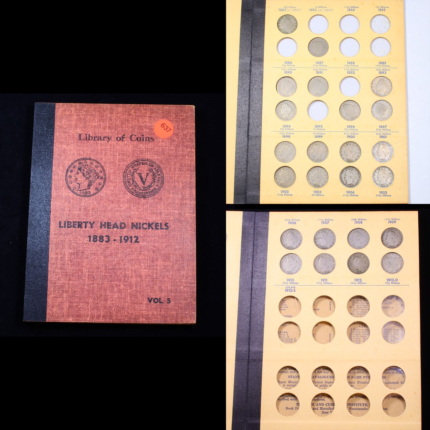 Partial Liberty Nickel Book 1883-1912 24 coins.        A excellent Partial Liberty Nickel Book. Dates Included range from 1883-1912. All coins encased in a nice Coin And Currency Institute coin book. An Excellent grouping of 24 coins. Includes the 1901 in vf, the 1912 in VF, 1907 in xf,