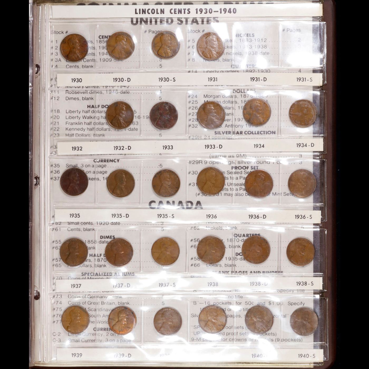Partial Lincoln 1c Coinmaster Folder, 1909-1940 74 coins in Total. All coins encased in a Coinmaster Coin Album. Date Range from 1909-1940. A Nice grouping of 74 coins.