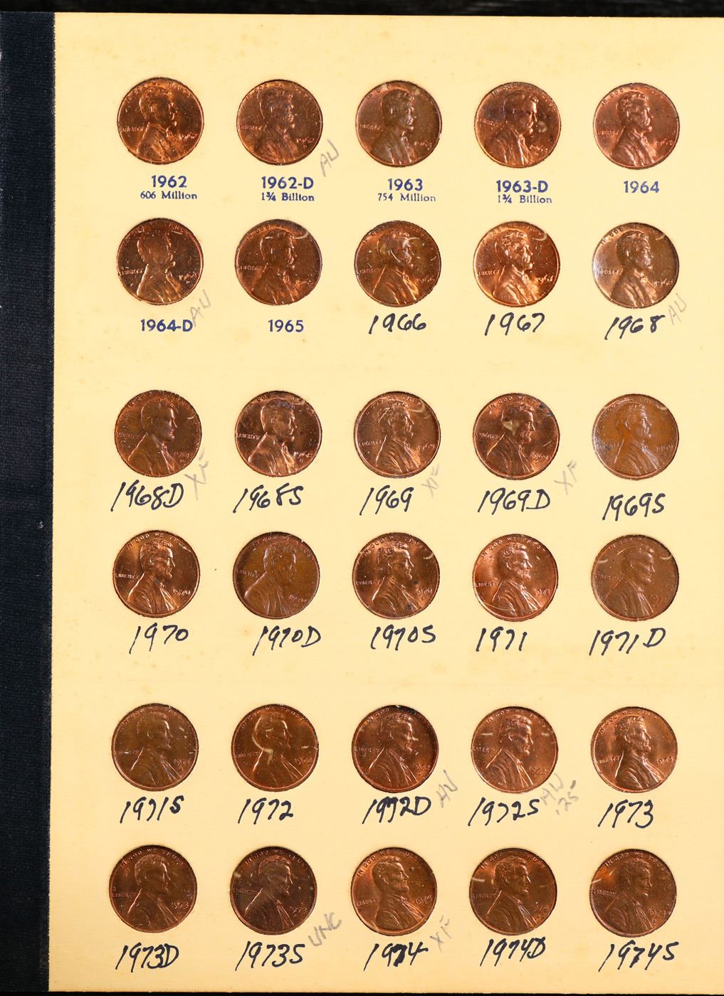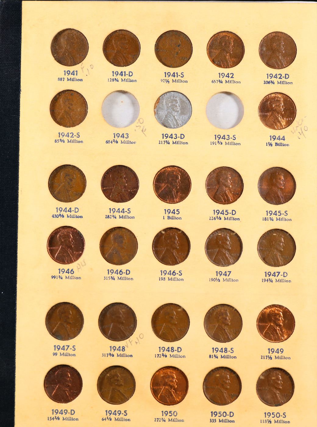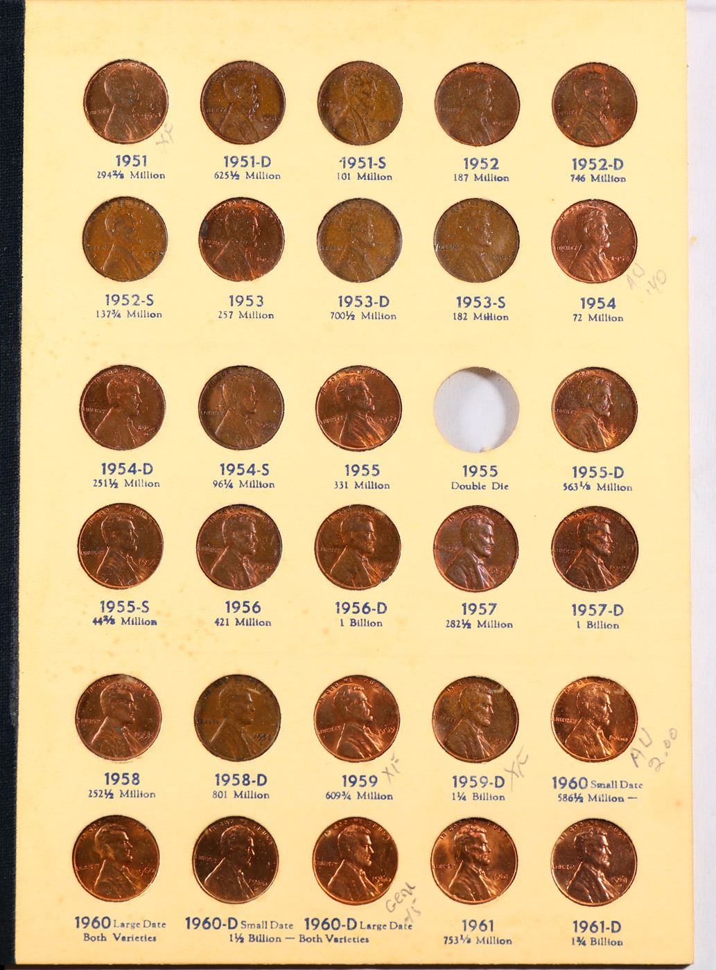Partial Lincoln 1c Library of Coins folder #2, 1941-1974. 87 Coins