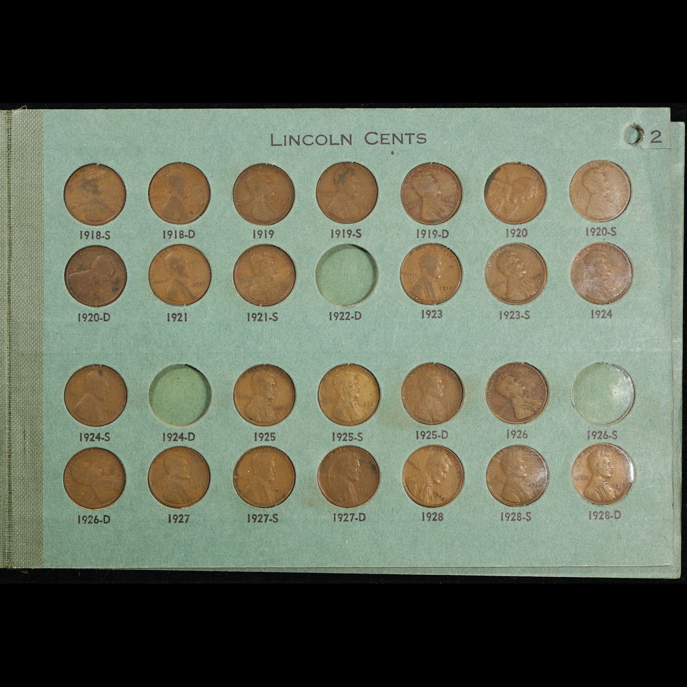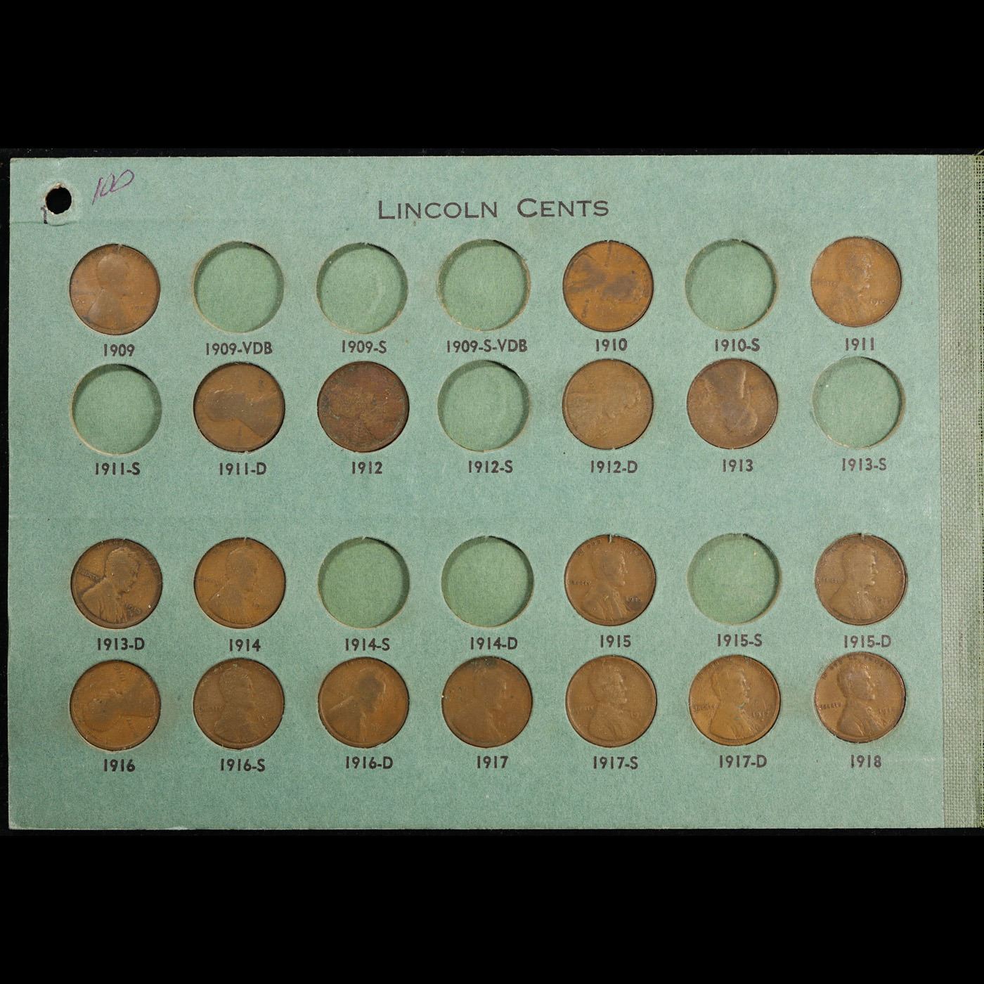Partial Lincoln 1c Wayte Raymond Folder, 1909-1939 70 coins in Total
