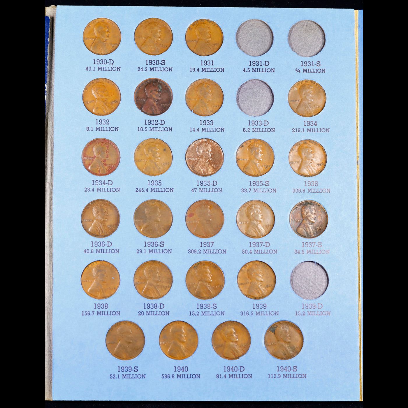 Partial Lincoln 1c Whitman Folder, 1909-1940 71 coins in Total