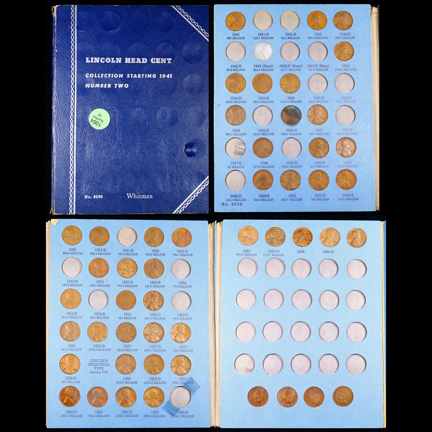 Partial Lincoln 1c Whitman Folder, 1941-1964 50 coins in Total