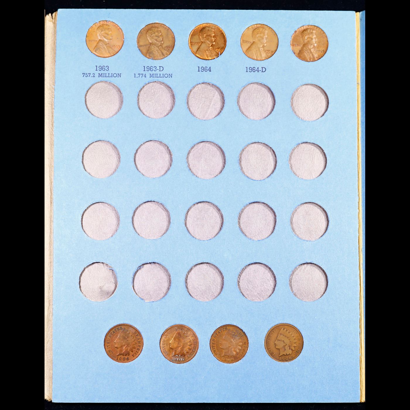 Partial Lincoln 1c Whitman Folder, 1941-1964 50 coins in Total. All coins encased in a Whitman Coin Album. Date Range from 1858-1909. A Nice grouping of 28 coins, Missing 30 coins. With 1 Flying Eagle 5c