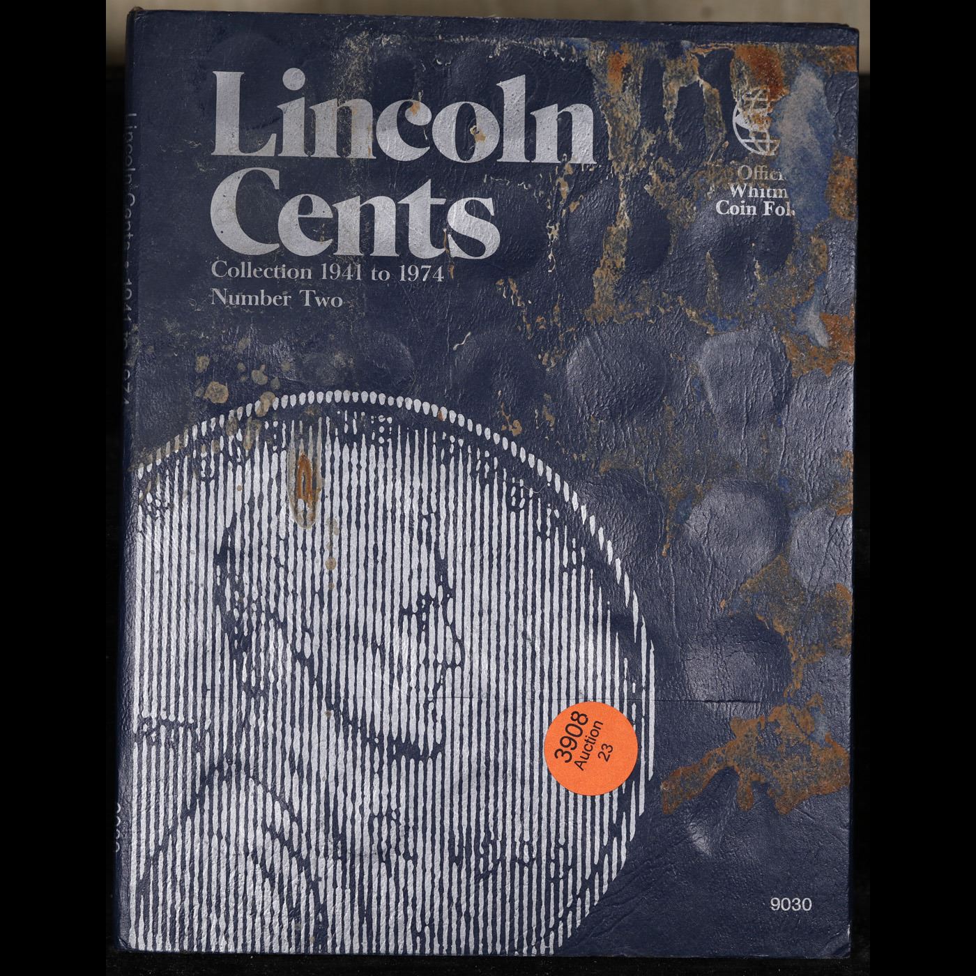 Partial Lincoln 1c Whitman Folder, 1941-1974 60 coins in Total. All coins encased in a Whitman Coin Album. Date Range from 1941-1974. A Nice grouping of 60 coins.