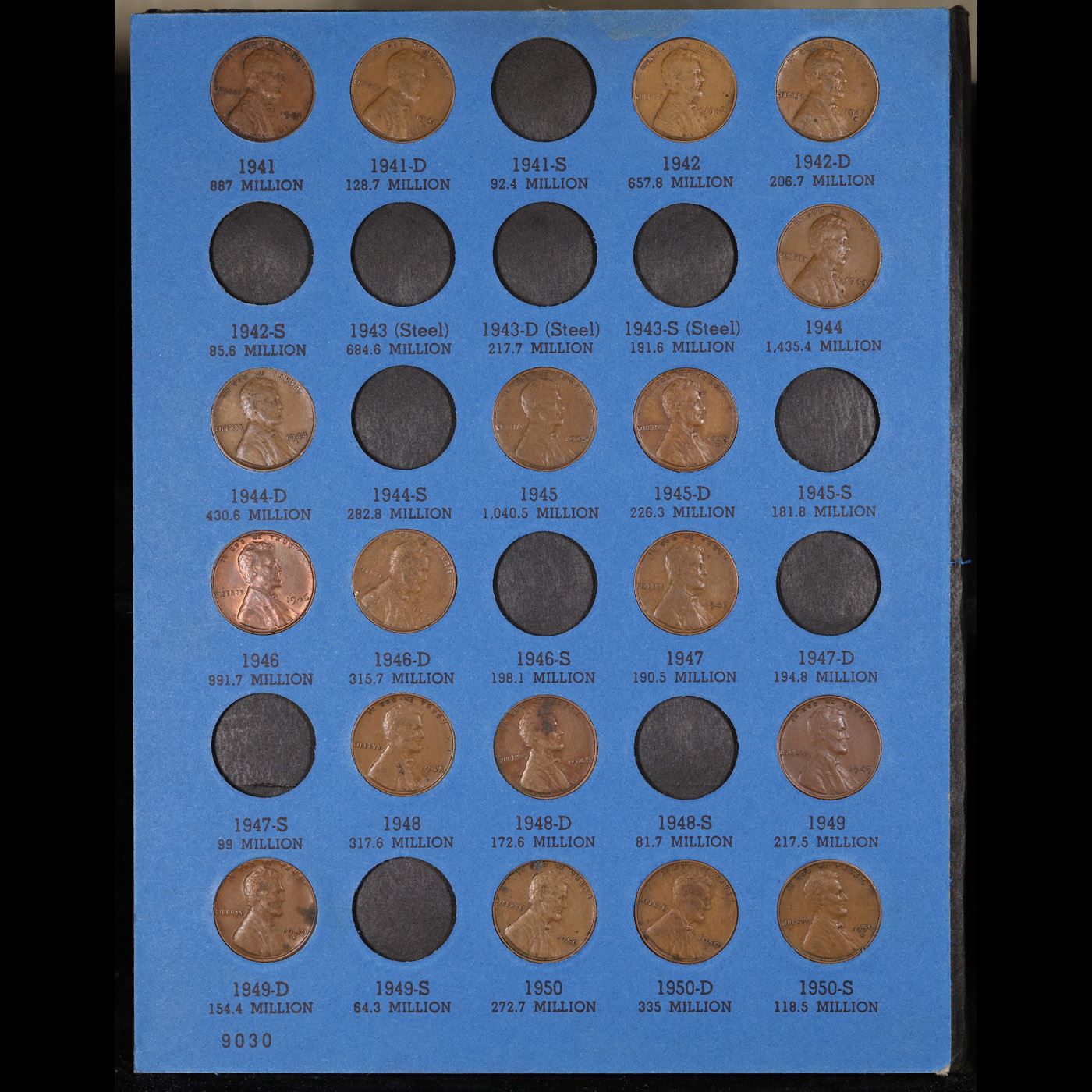 Partial Lincoln 1c Whitman Folder, 1941-1974 60 coins in Total