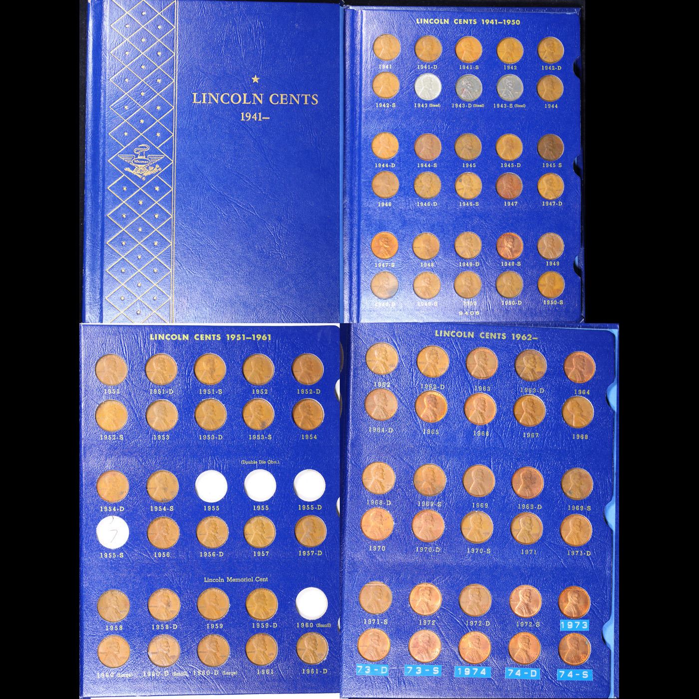 Partial Lincoln 1c Whitman Folder, 1941-1974 90 coins in Total