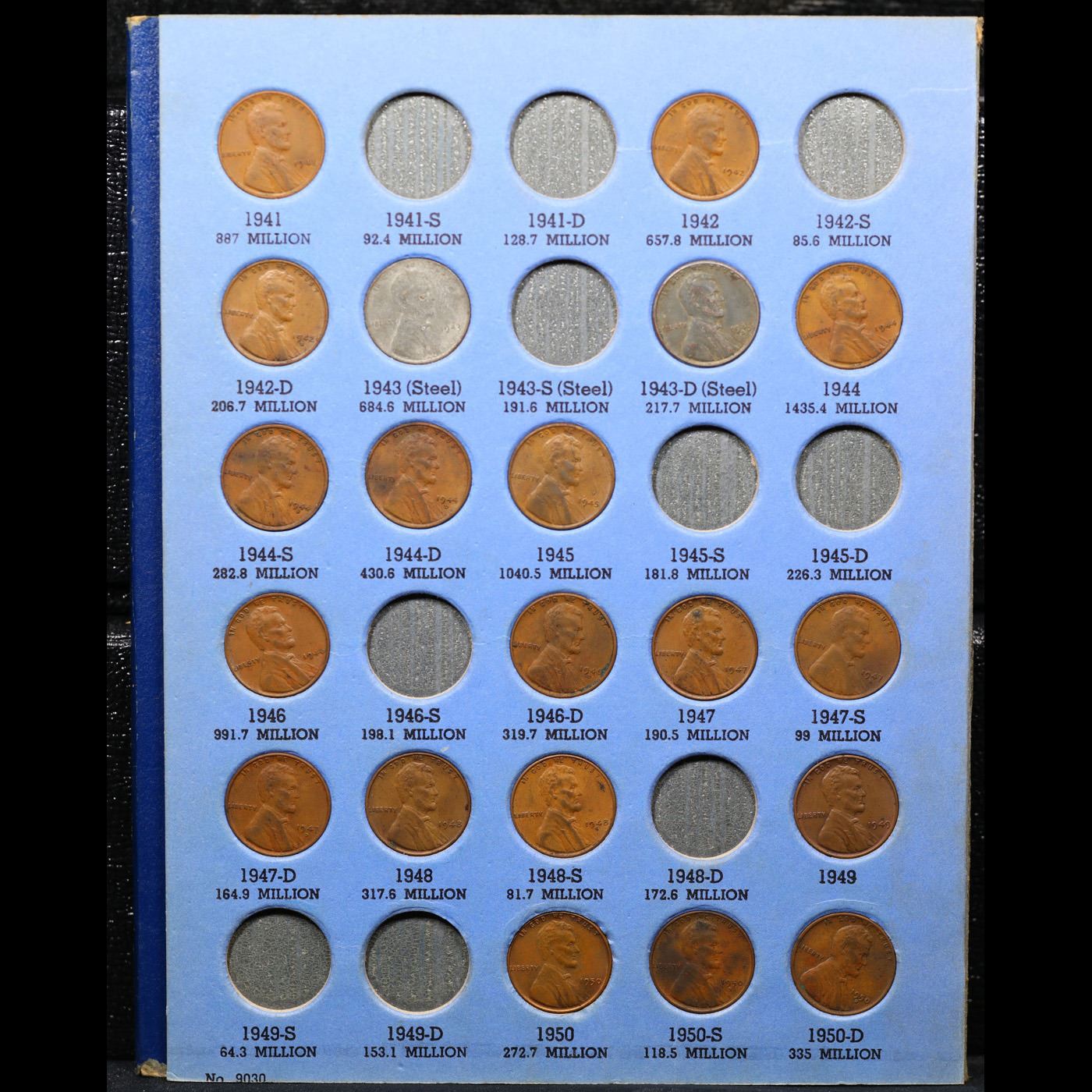 Partial Lincoln 1c Whitman album, 1941-1964, 41 coins in Total