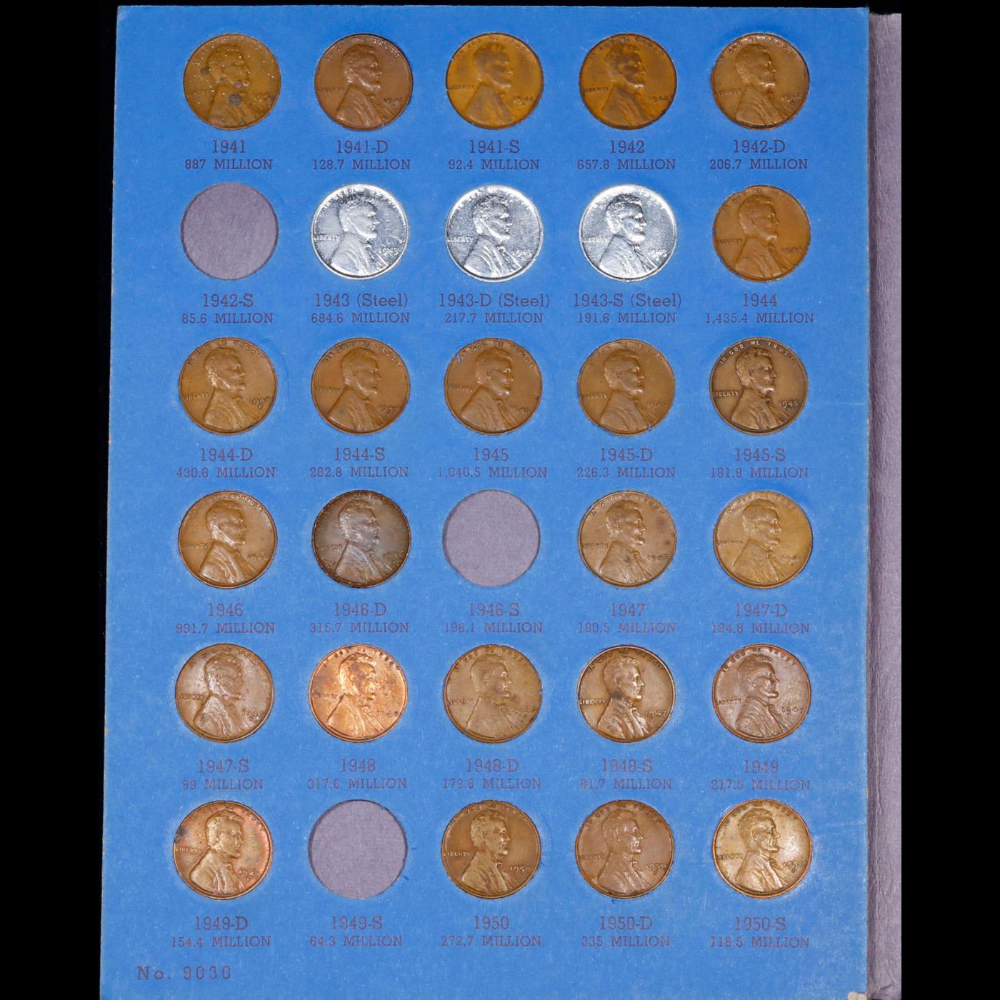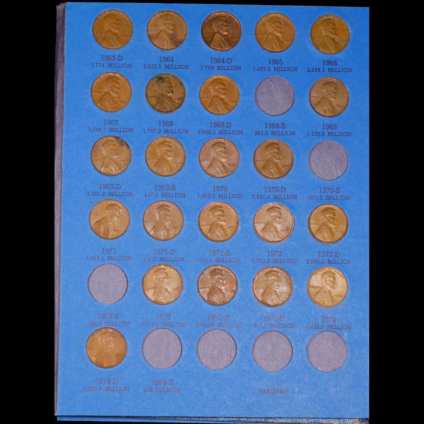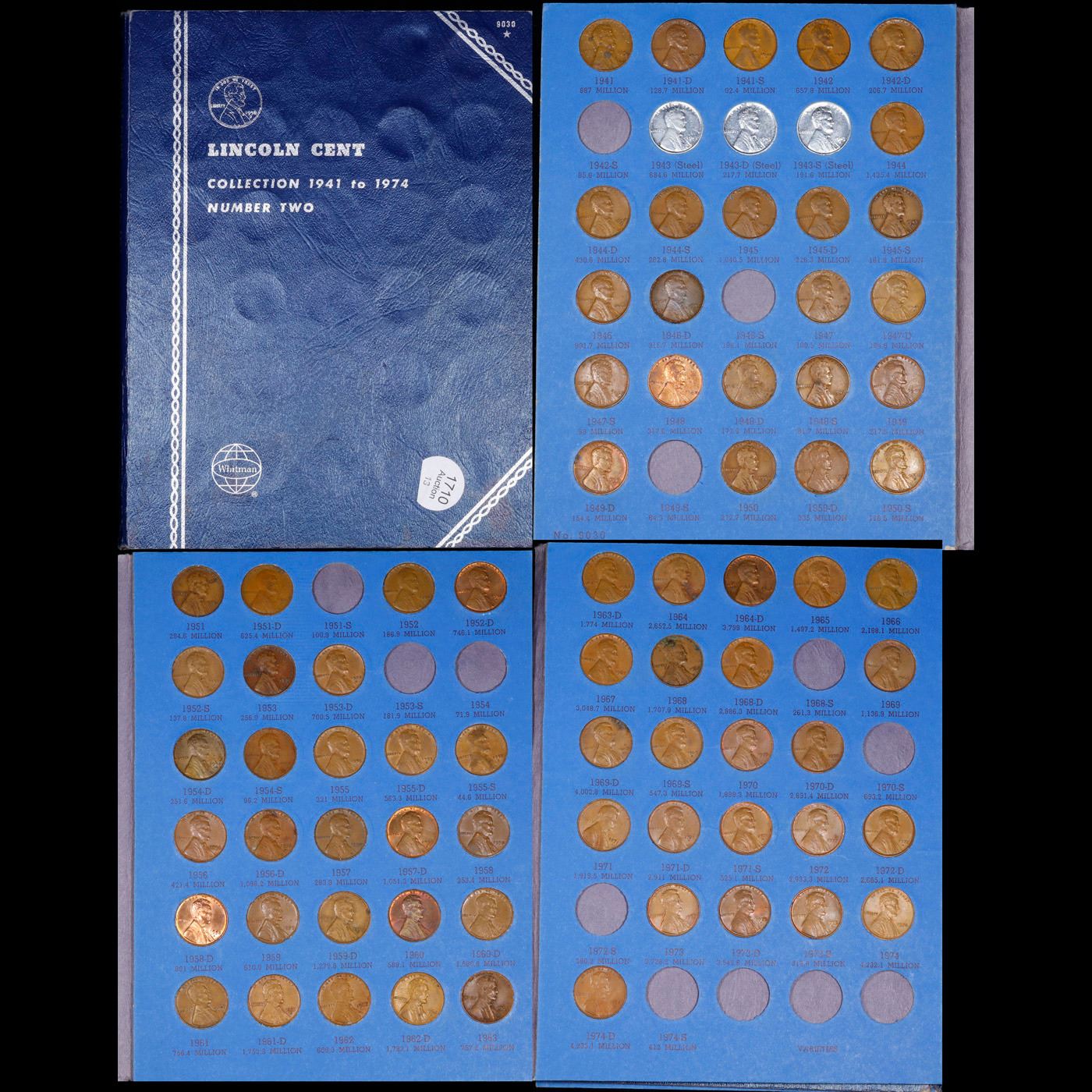 Partial Lincoln 1c Whitman album, 1941-1974, 76 coins in Total