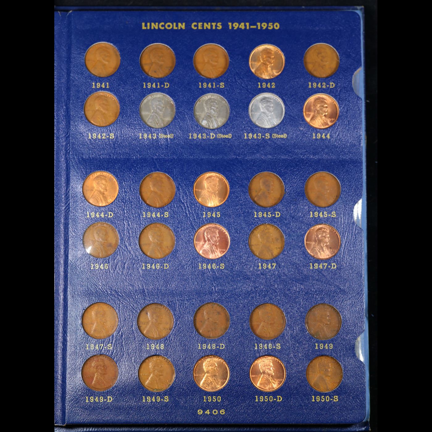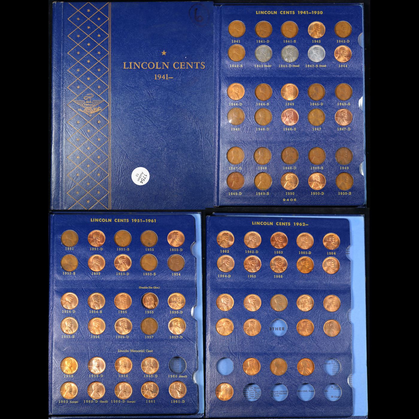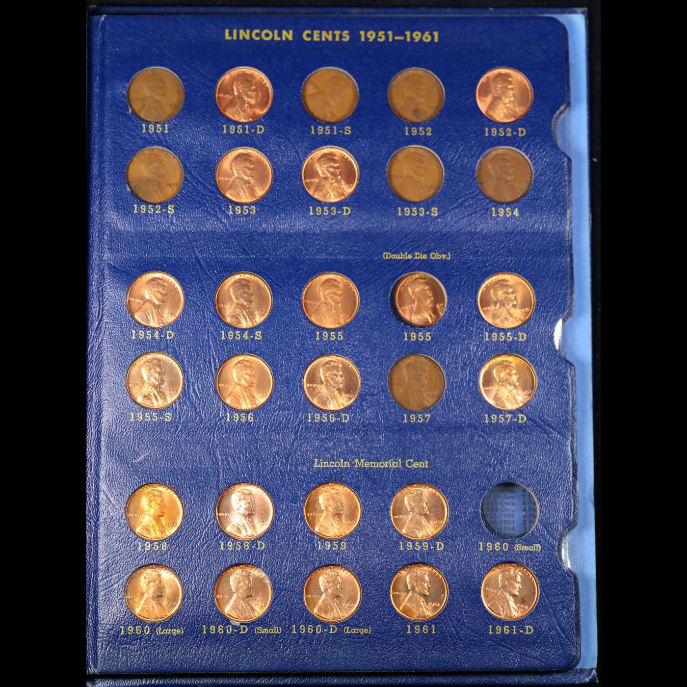 Partial Lincoln 1c Whitman album, 1941-1974, 81 coins in Total