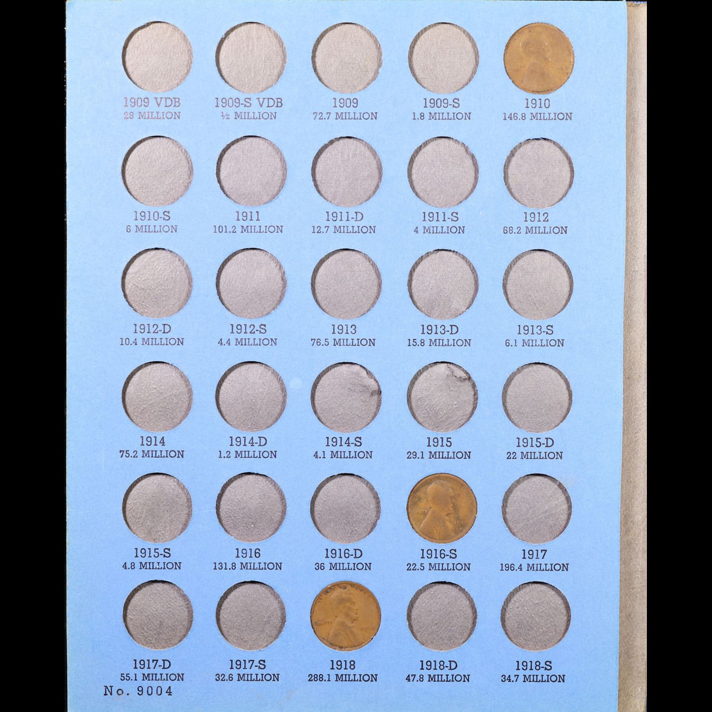 Partial Lincoln 1c Whitman folder #1, 1910-1940, 17 coins.