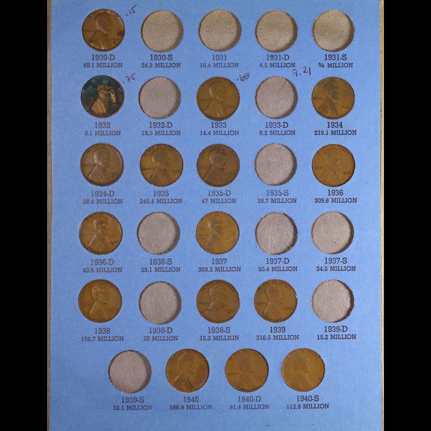 Partial Lincoln 1c Whitman folder, 1909-1940, 38 coins