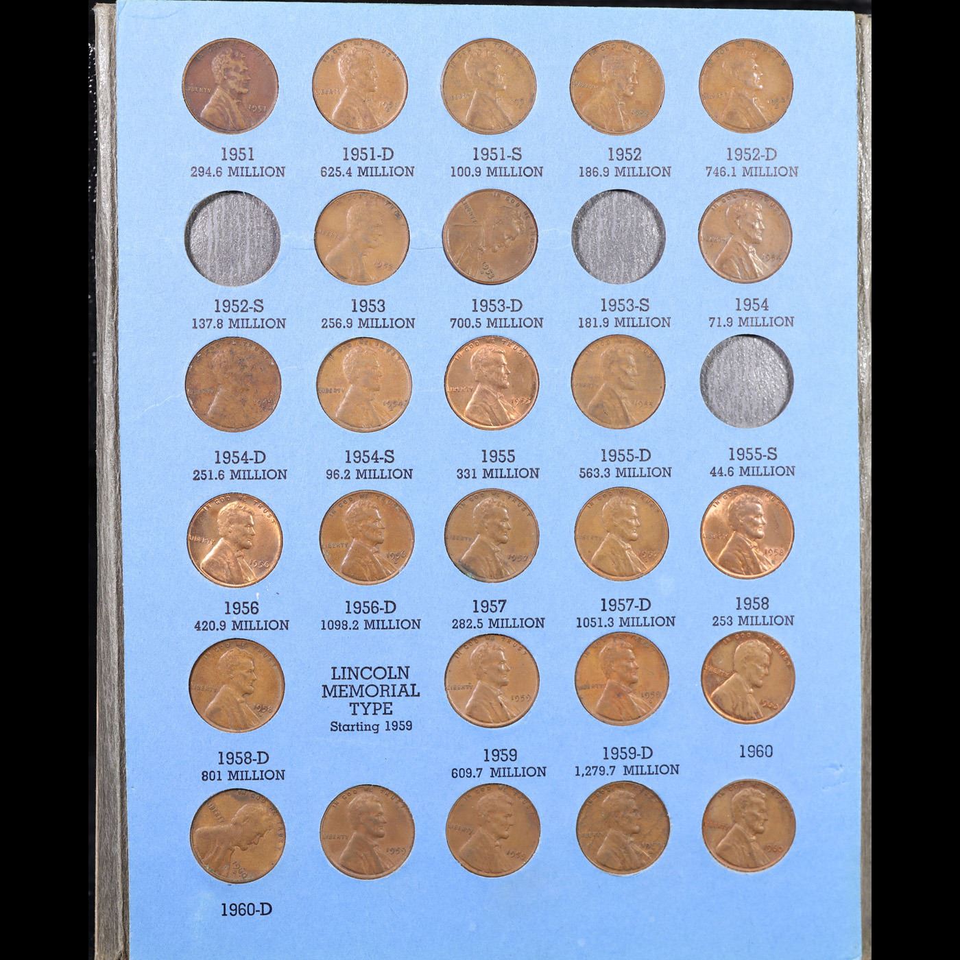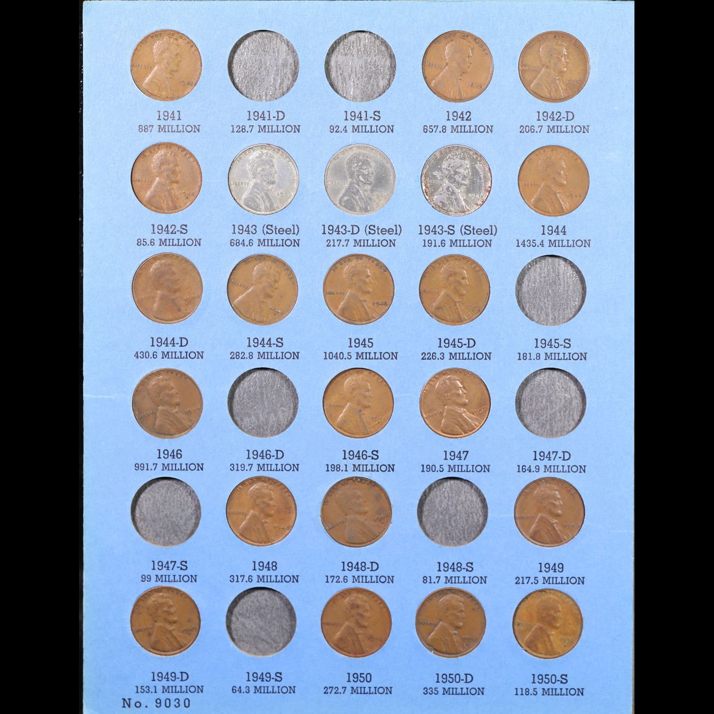 Partial Lincoln 1c Whitman folder #2, 1941-1965, 53 coins.