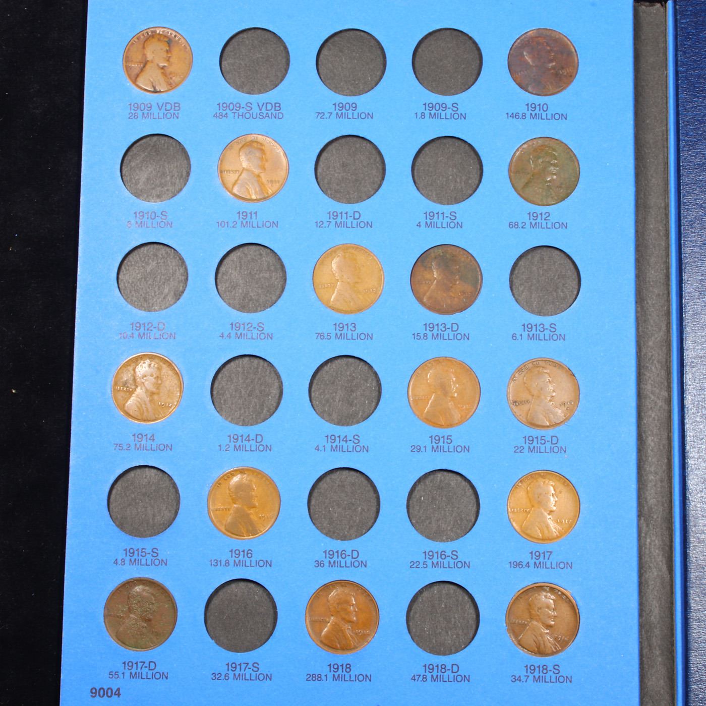 Partial Lincoln Cent Book 1909-1940 41 coins. A excellent Partial Lincoln cent Book. Dates Included range from 1909-1940. All coins encased in a nice Whitman book. An Excellent grouping of 41 coins. 17 are from 1090-1919