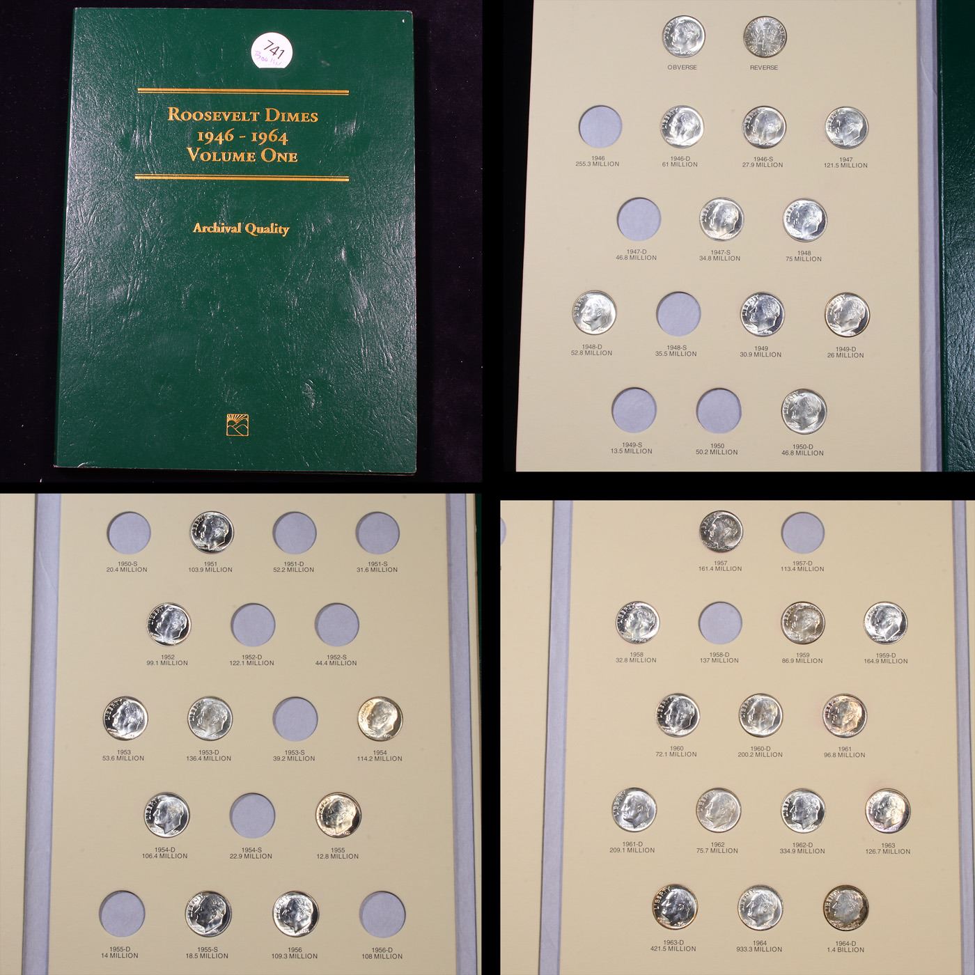 Partial Roosevelt Dime Book 1946-1964 34 coins. A Nice Partial Roosevelt Dime Book. Dates Include 1946-1964. All coins encased in a Nice Lttleton coin book. An Nice grouping of 34 coins. All the coins are sliver and Unc's, most are Gem, and a few are attractively toned