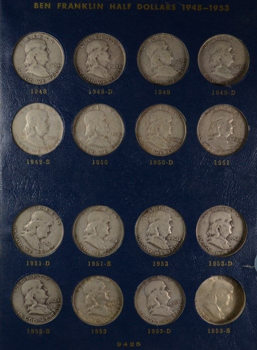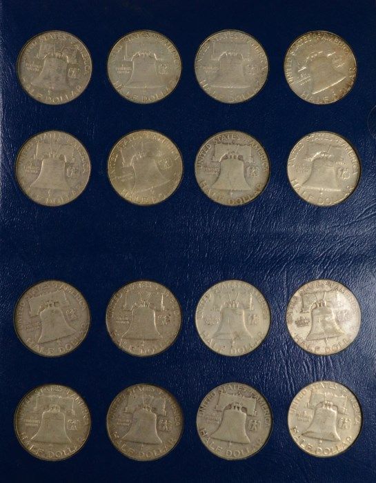 Partial Set of Franklin Halves 1948-1963 Missing the 1953-S, In Old Blue Album