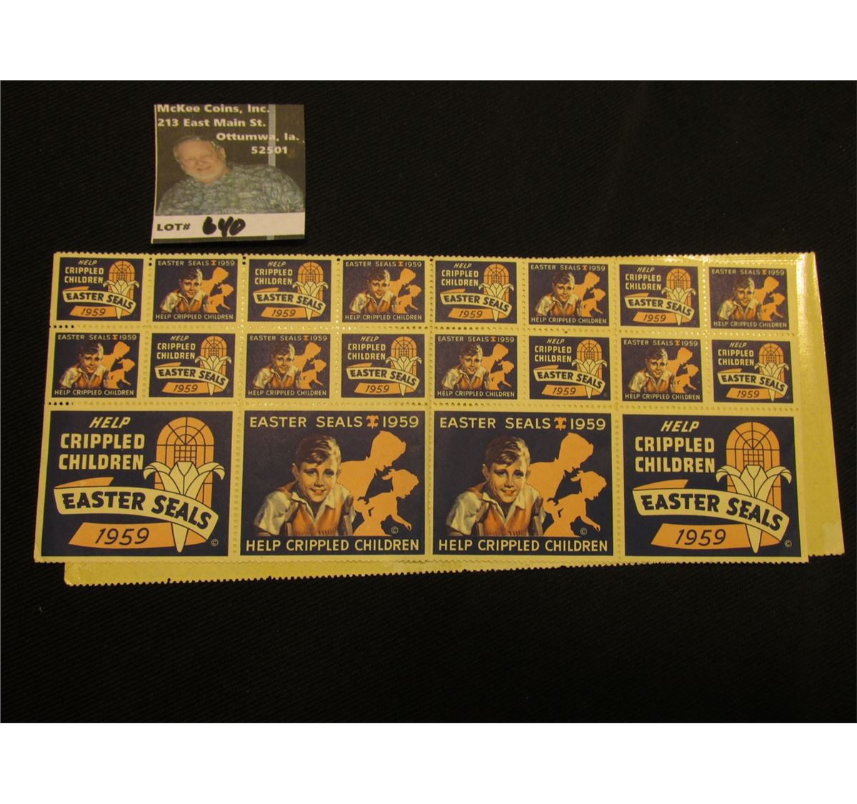 Partial Sheet of 1959 Easter Seals. "Help Crippled Children".