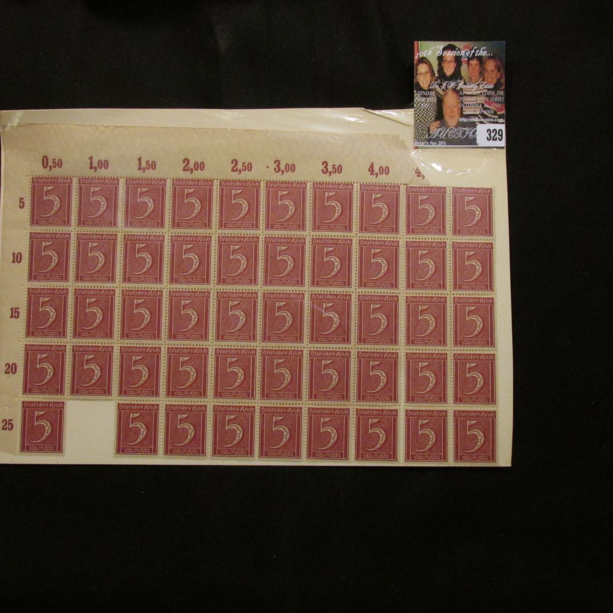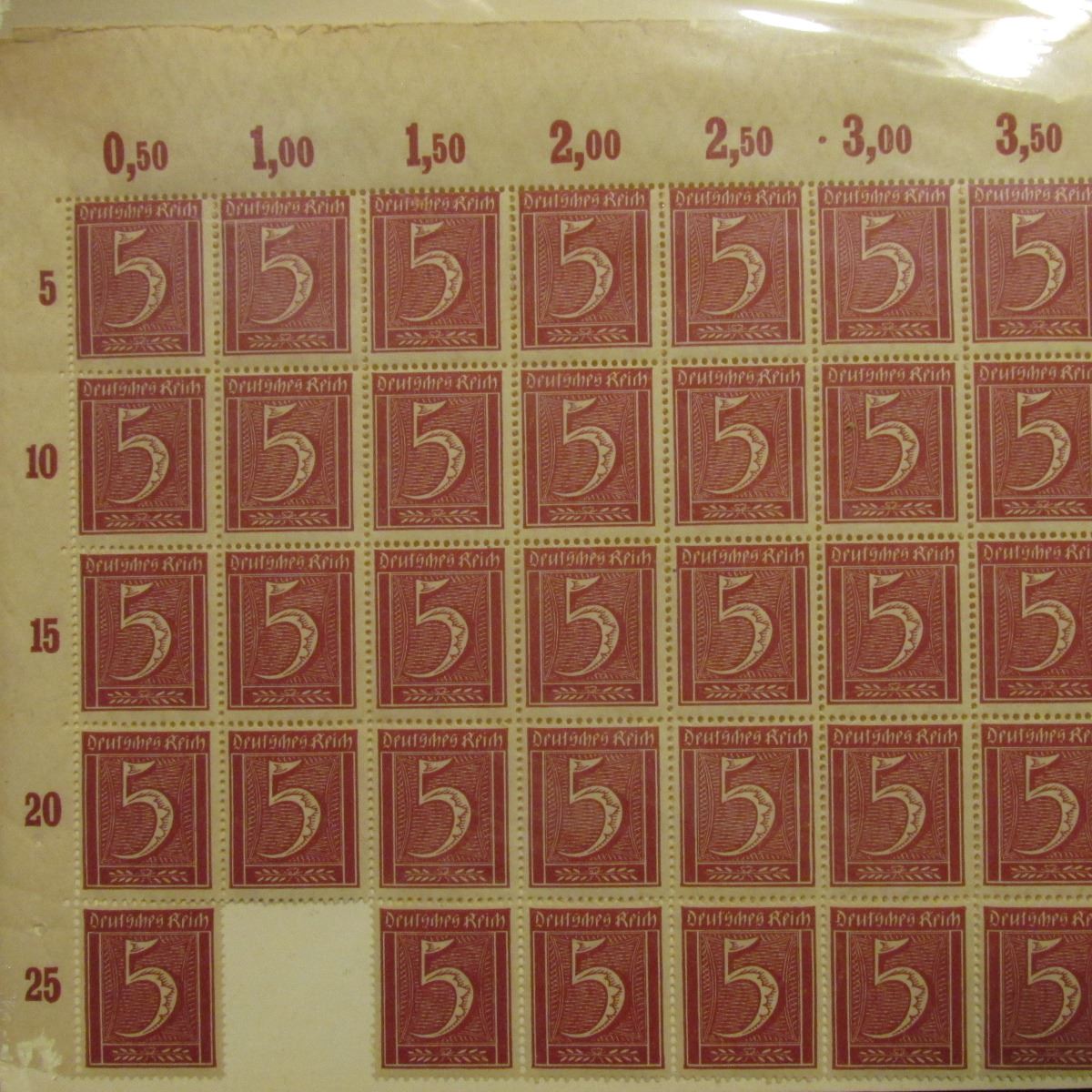 Partial Sheet of 5 Pfennig German Stamps, mint condition. Pre Nazi era.