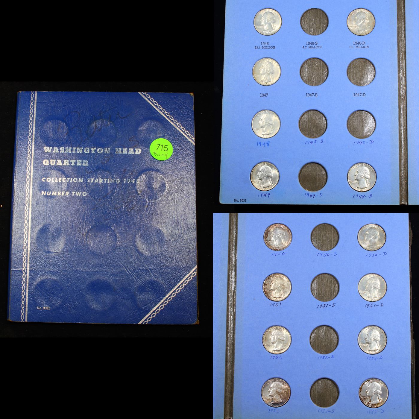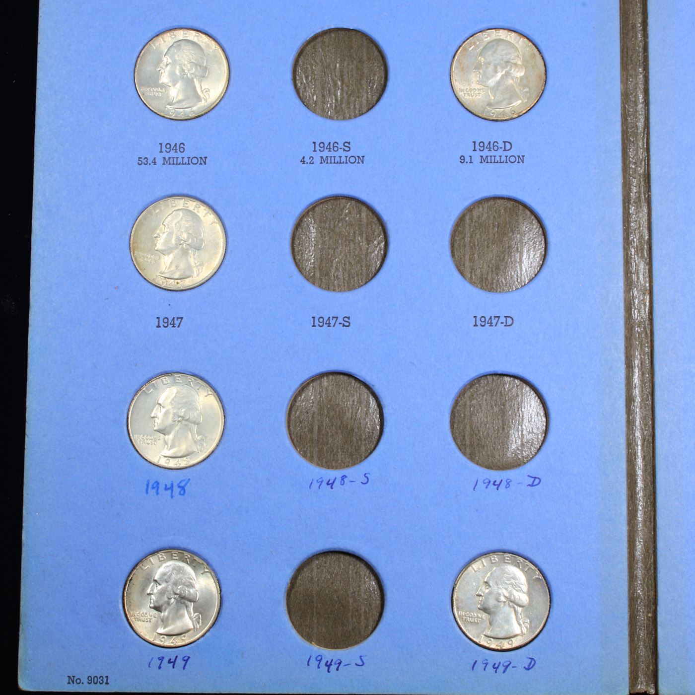 Partial Washington Quarter Book 1946-1953 14 coins. A nice partial Washington Quarter Book. Dates included are 1946-1953. All coins encased in a nice Whitman coin book. An Excellent grouping of 14 coins. All Are high grade many are gem. The 51-d looks like a gem+, outstanding high grade book. All uncs many gems. the 51-d Alone Trends $60