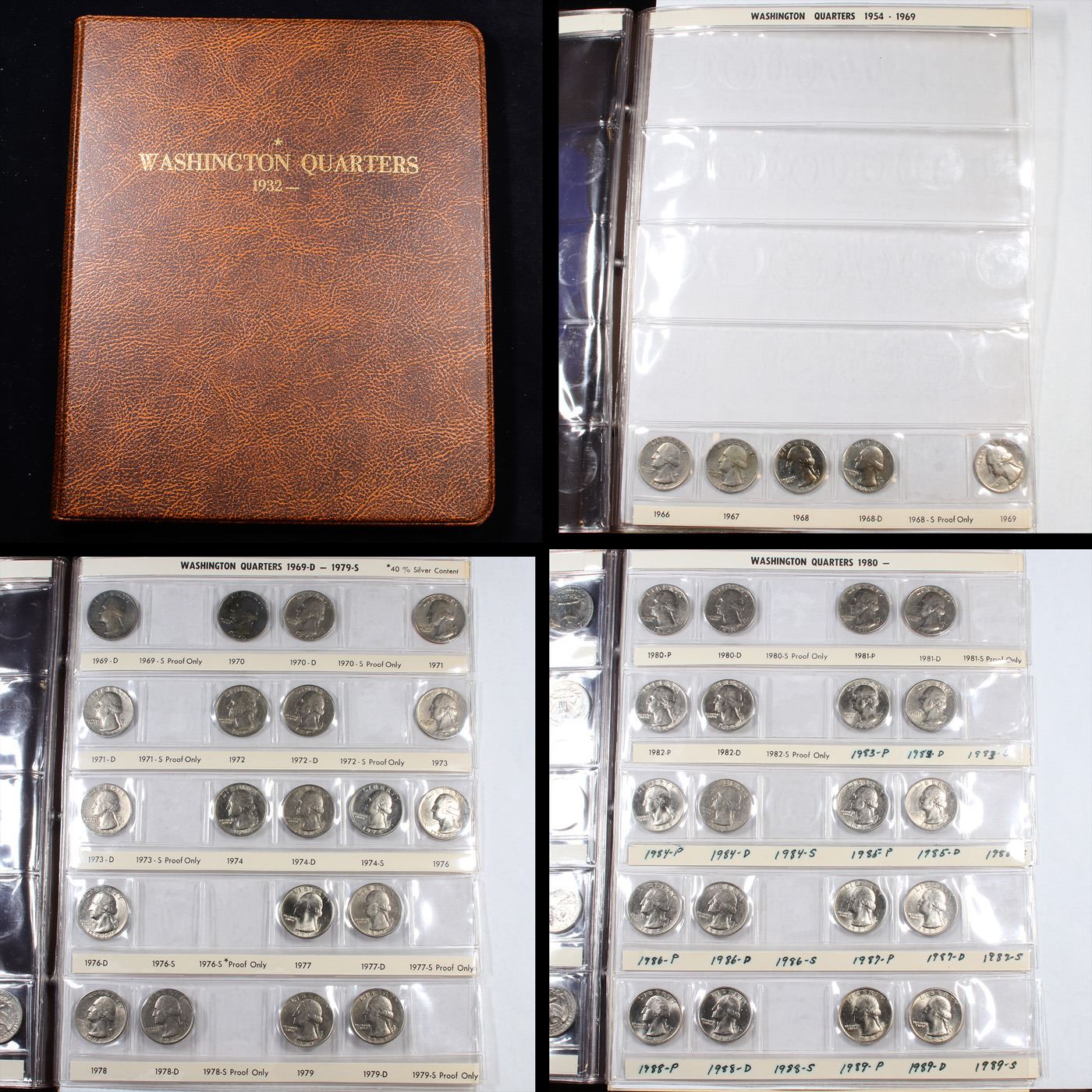 Partial Washington Quarter Book 1966-1989 45 coins. A nice partial Washington Quarter Book. Includes Dates 1966-1989. All coins encased in a nice Harco coin book. An Excellent grouping of 45 coins. Most of them are uncs, Some are proofs