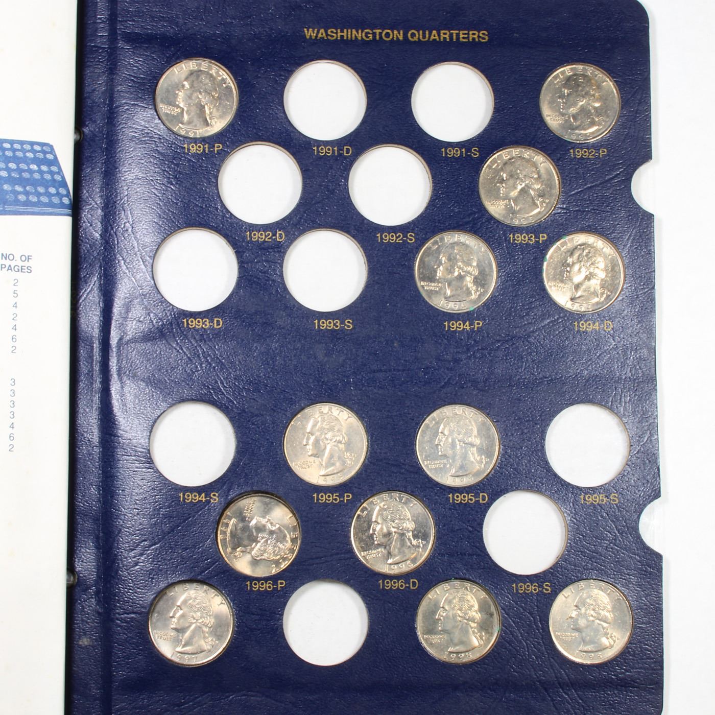 Partial Washington Quarter Book 1991-2000 21 coins. A excellent Partial Washington Quarter Book. Dates Included range from 1991-2000. All coins encased in a nice Whitman book. An Excellent grouping of 21 coins.