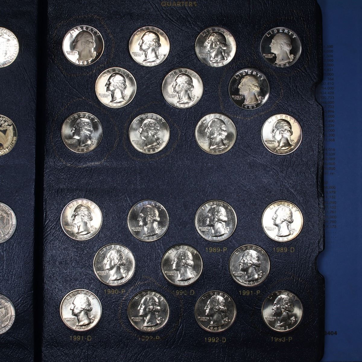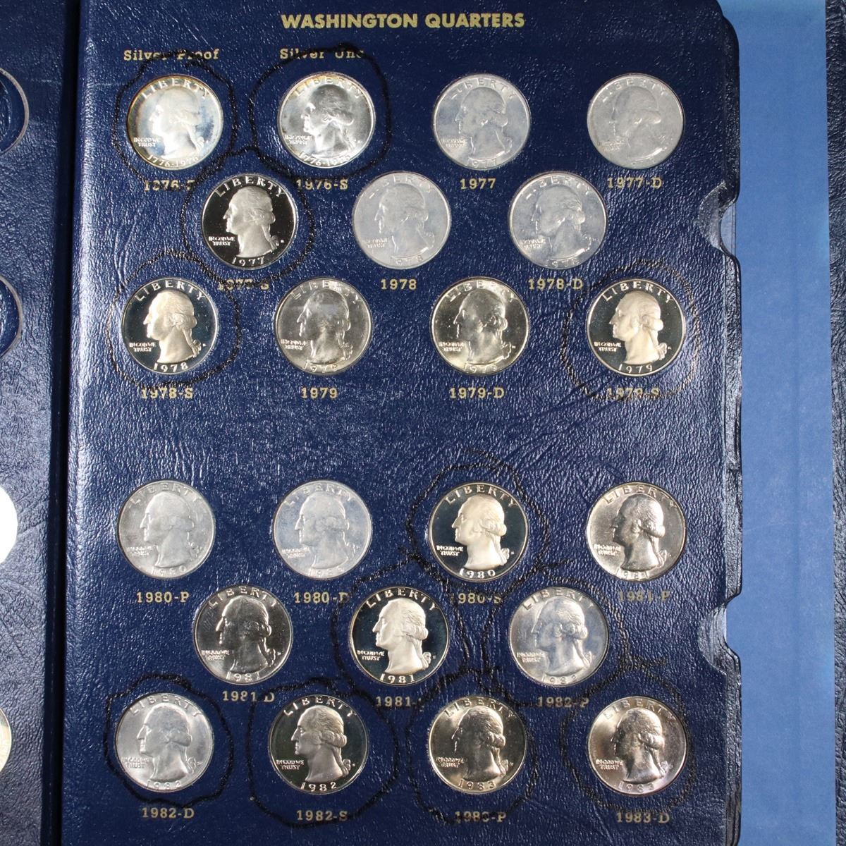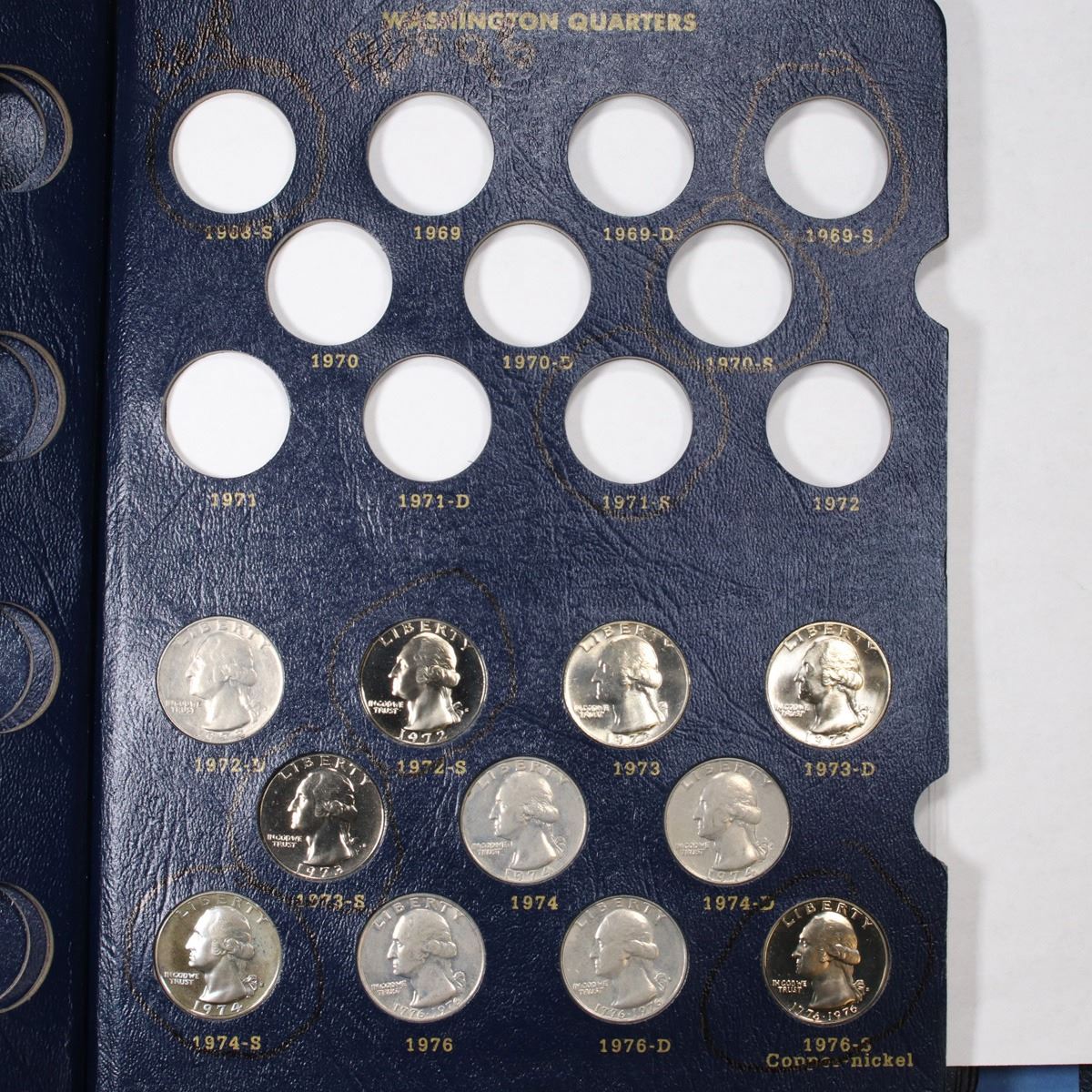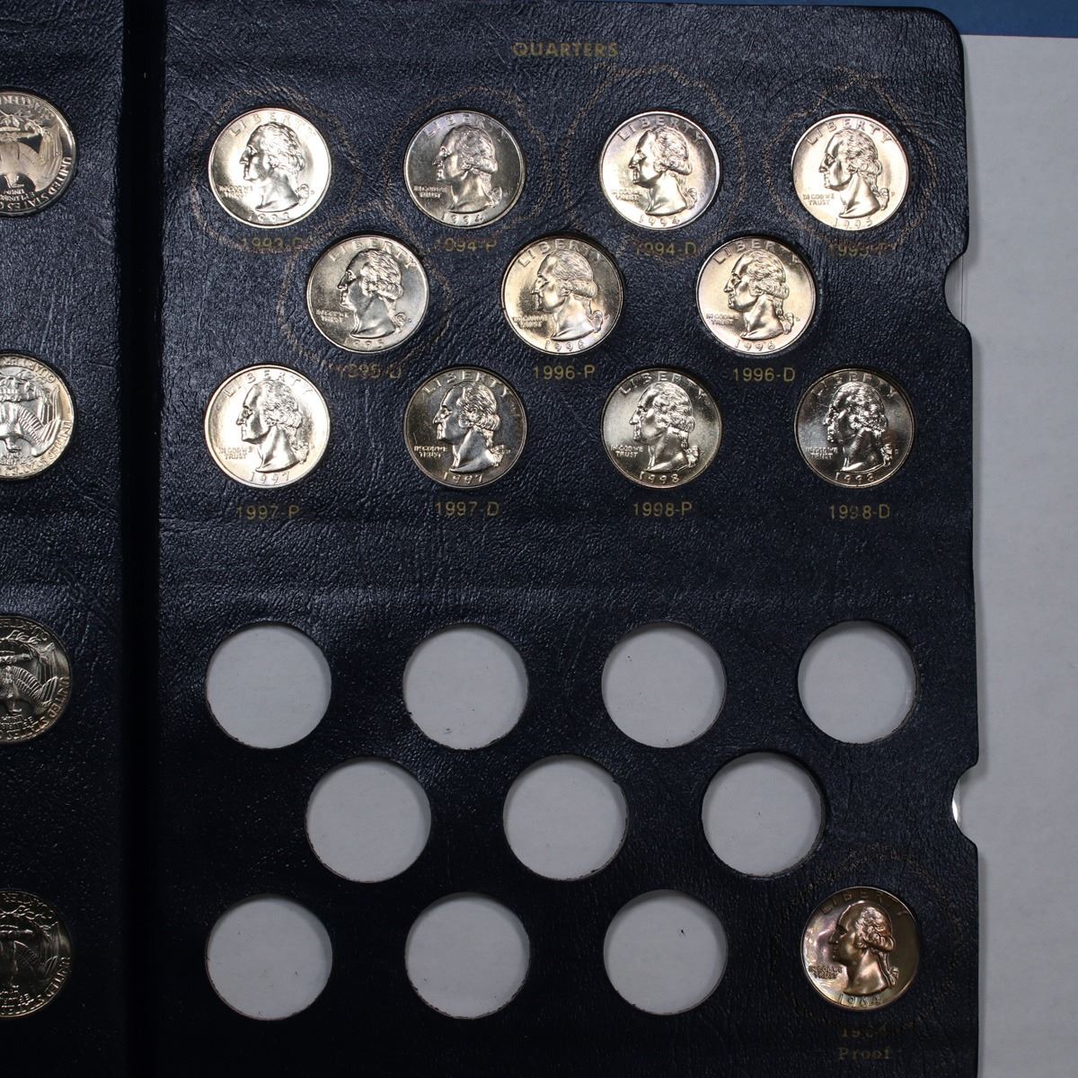 Partial Washington Quarters book 1964-1998 67 coins . Grades. Great Partial Washington Quarters Book. Dates Range from 1964-1998. This book includes 13 proof quarters. This magnificent set is encased in a fantastic Whitman Classic book. A great Grouping of 67 coins.