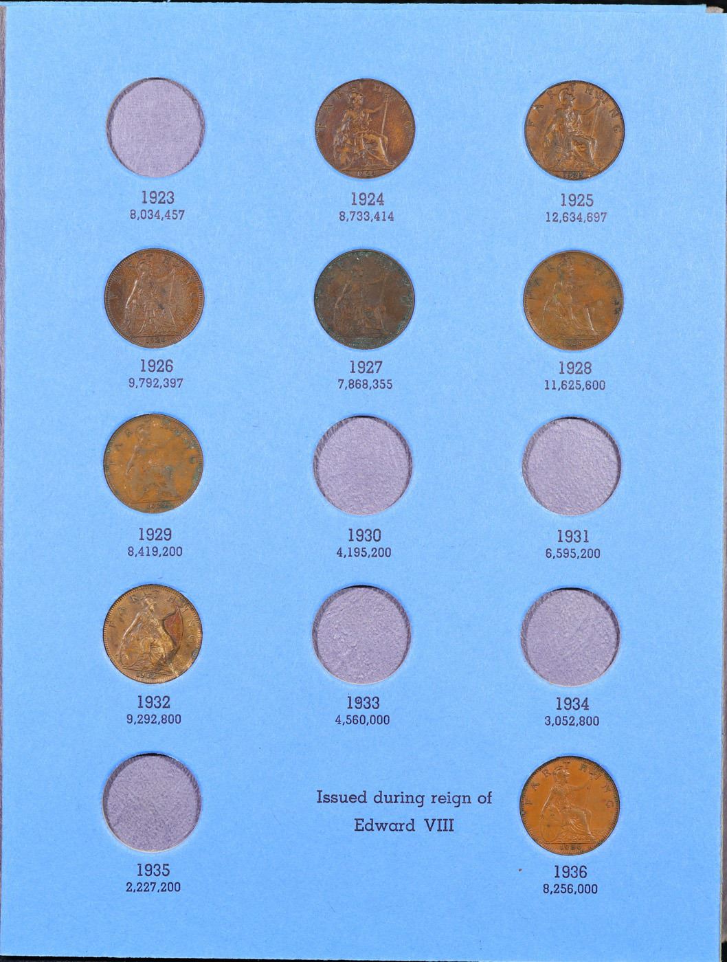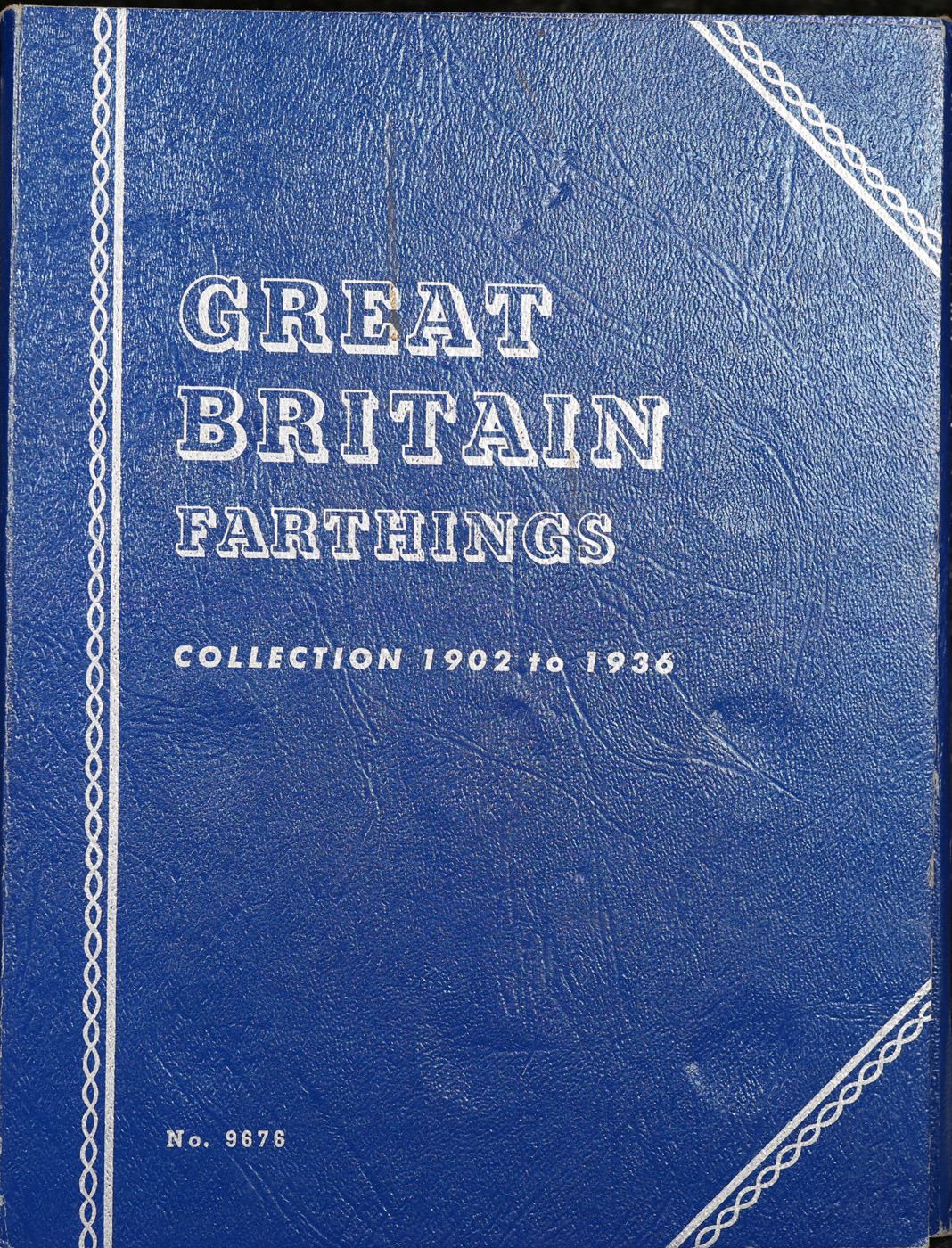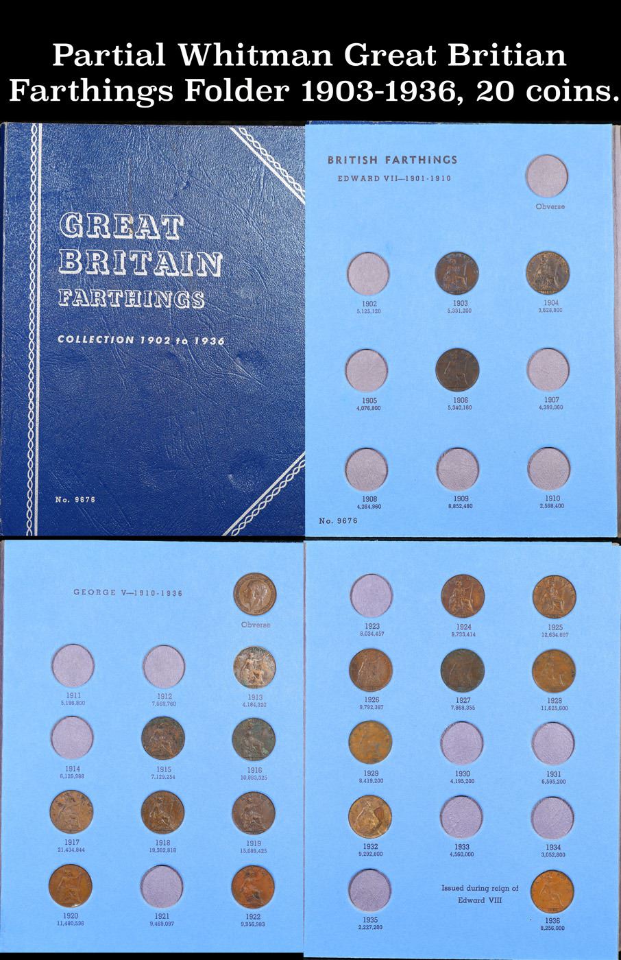 Partial Whitman Great Britian Farthings Folder 1903-1936, 20 coins.. All coins encased in a nice Whitman Great Britain Farthings Collection 1902-1936. The Dates are 1903-1936. A fantastic grouping of 20 coins, one of which are extra use to show off the obverse.