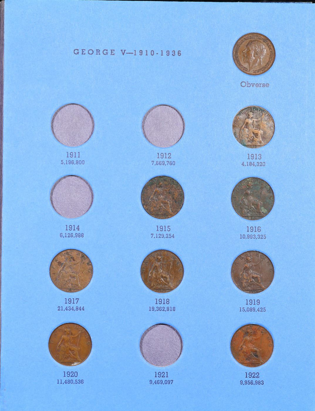 Partial Whitman Great Britian Farthings Folder 1903-1936, 20 coins.