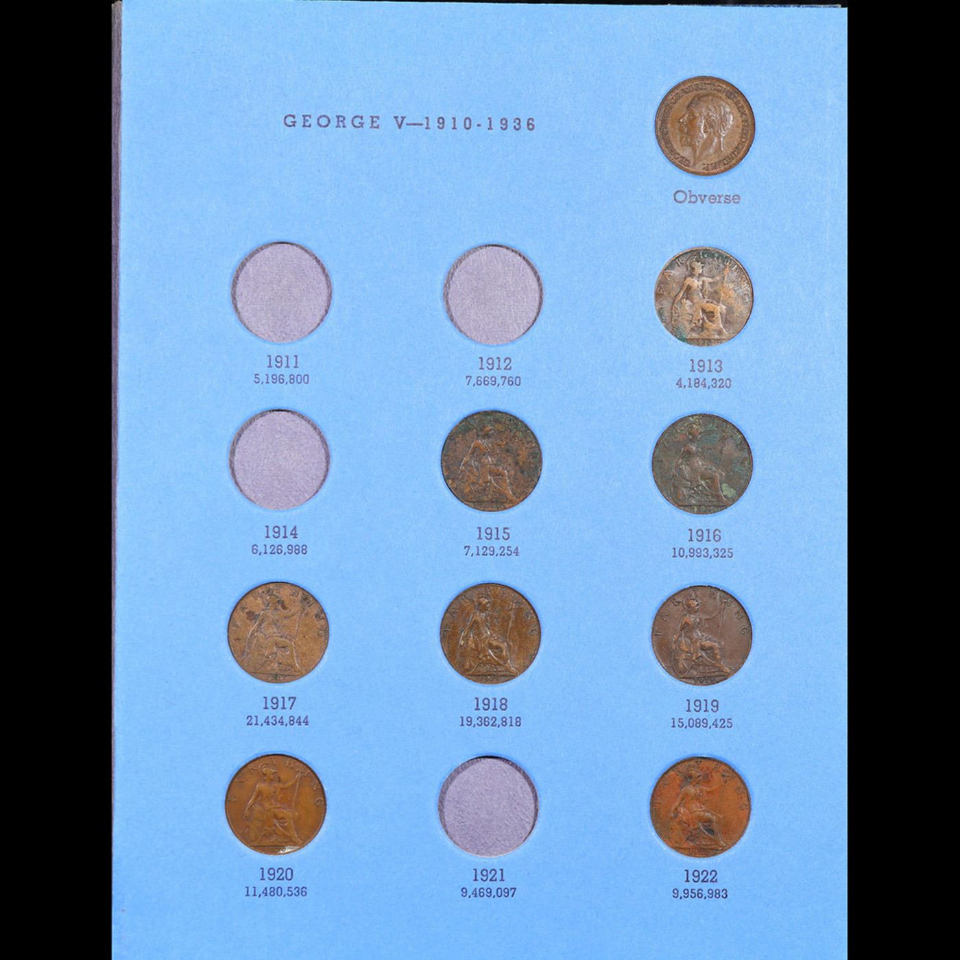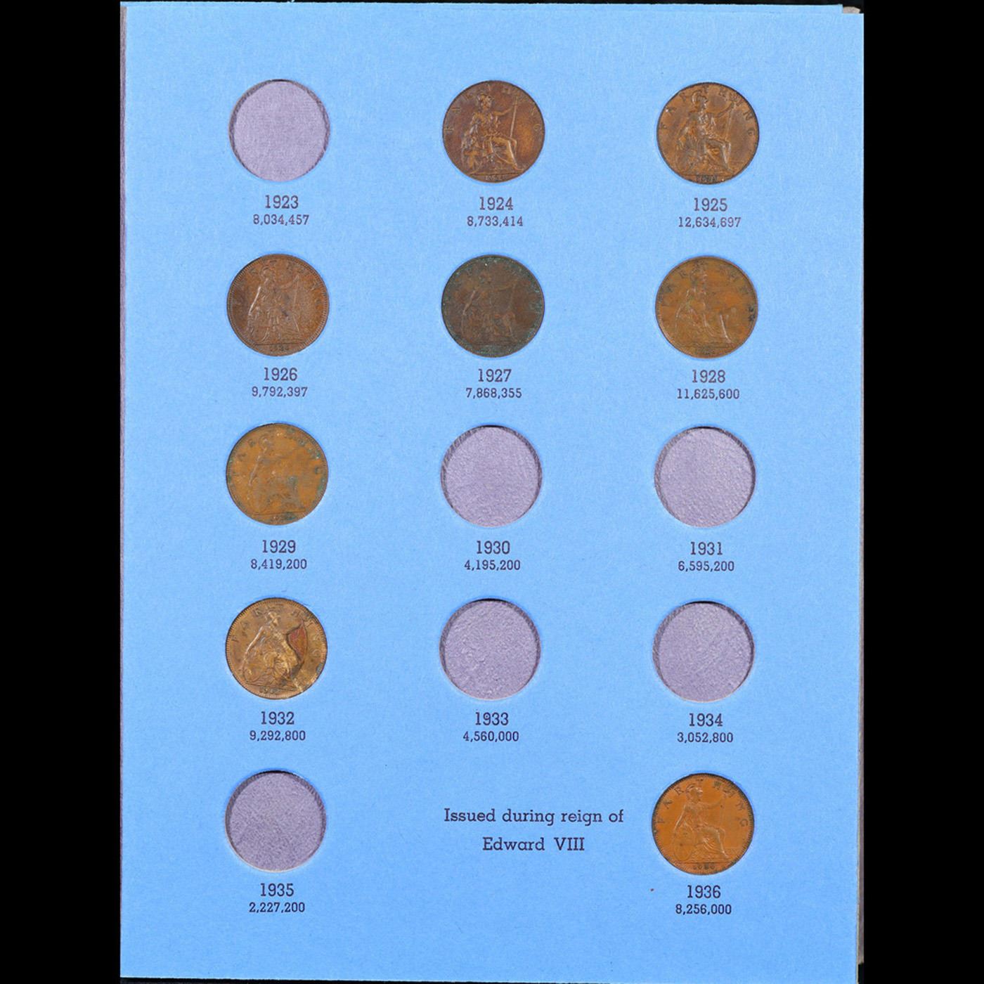 Partial Whitman Great Britian Farthings Folder 1903-1936, 20 coins.