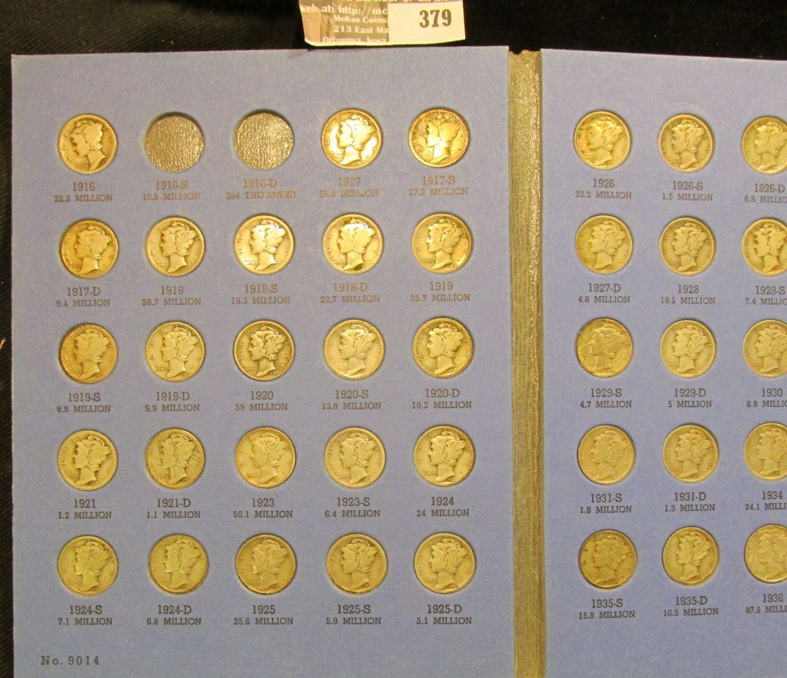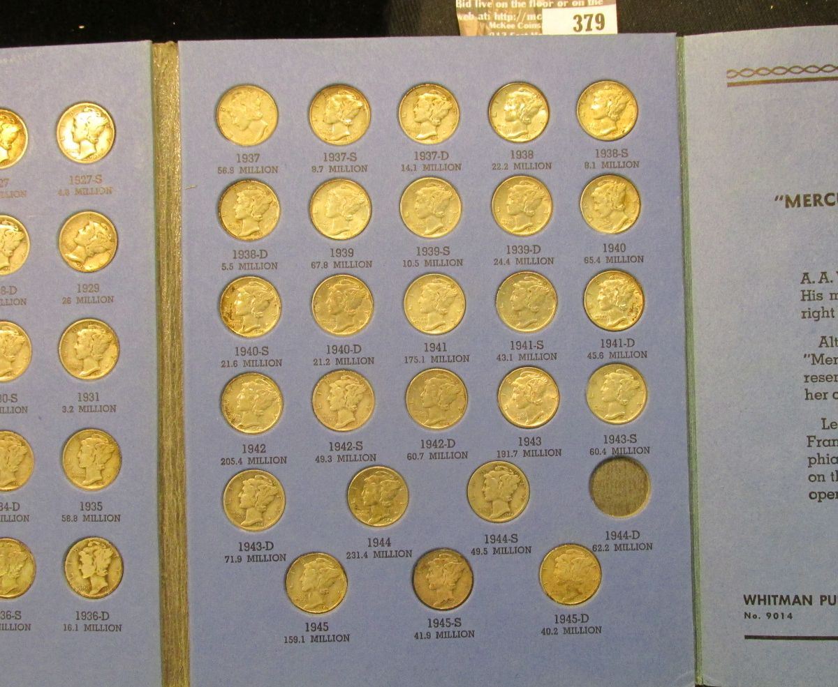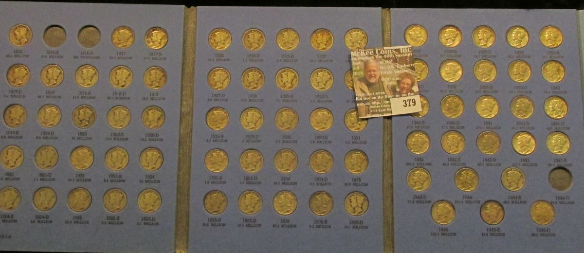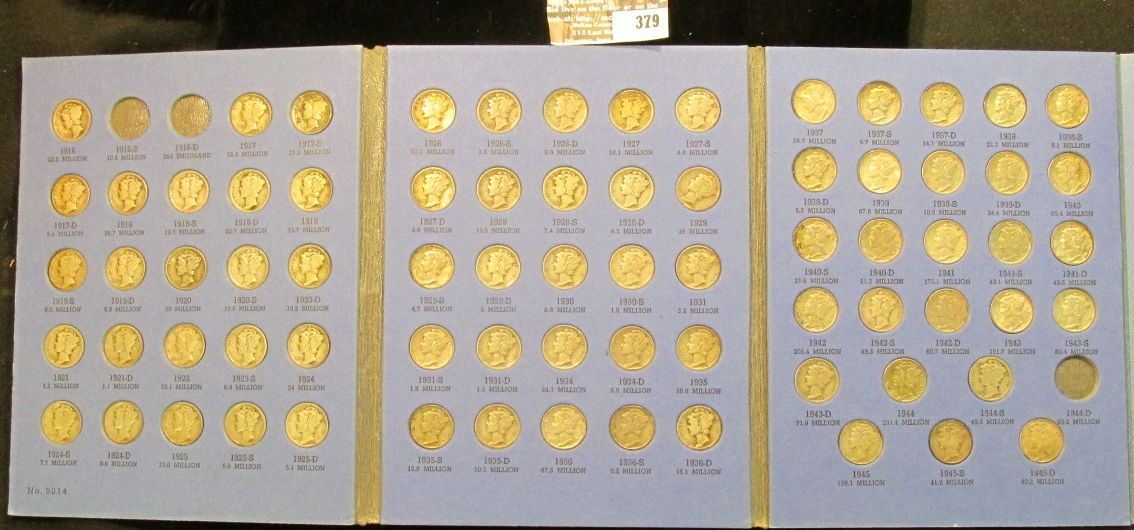 Partial set 74 different Mercury Dimes dating 1916-45 grades up to AU, missing only 1916 D, 16 S, 44D, and overdates. The 1921 D is scratched. Stored in a blue Whitman folder.