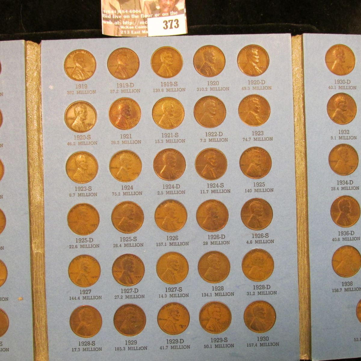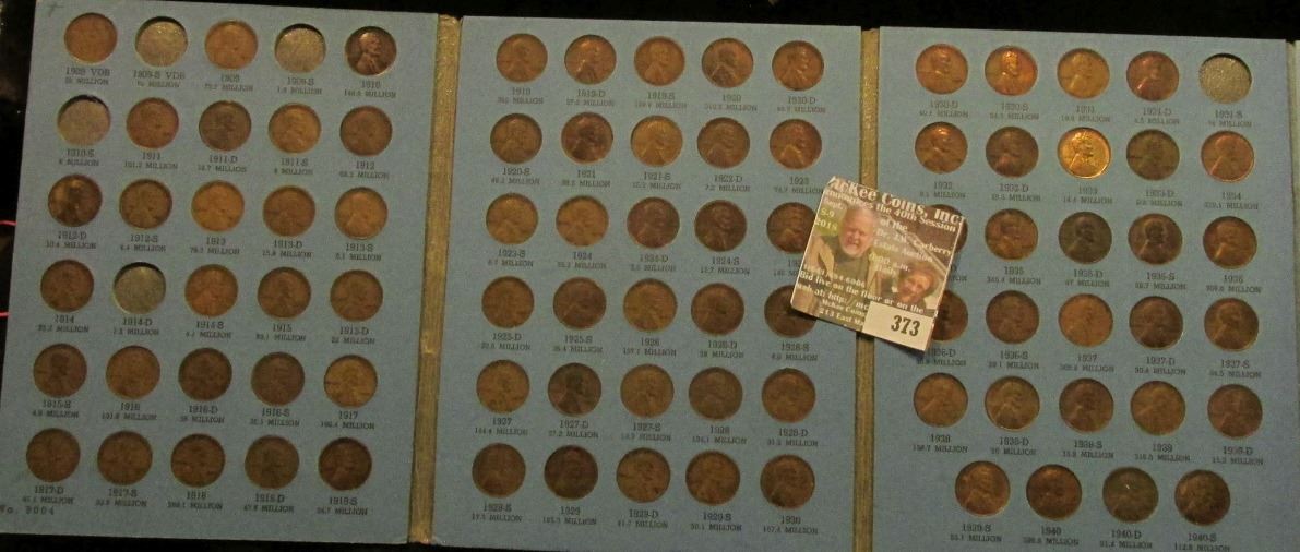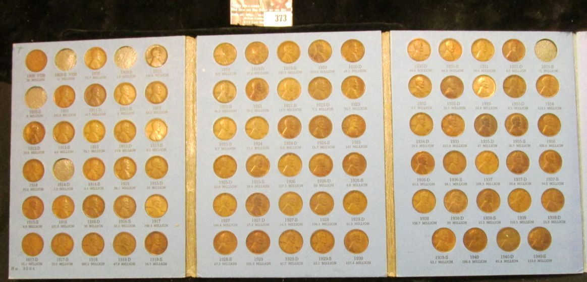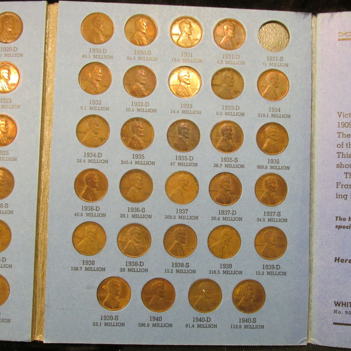 Partial set of 84 different Lincoln Cents 1909-40 grades up to AU. Missing only the 1909 S, 09 S VDB, 10 S, 14 D, 22 P, and 31 S. Stored in a blue Whitman folder.