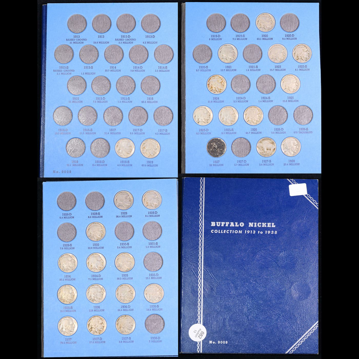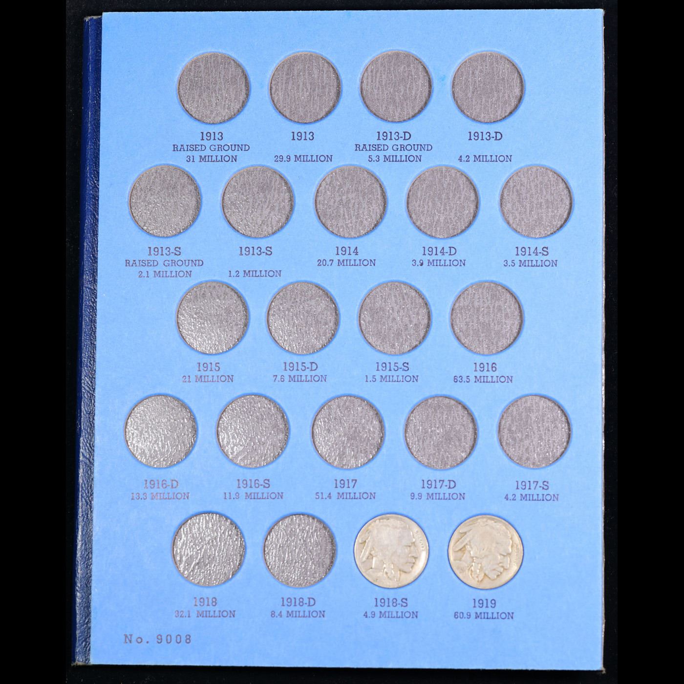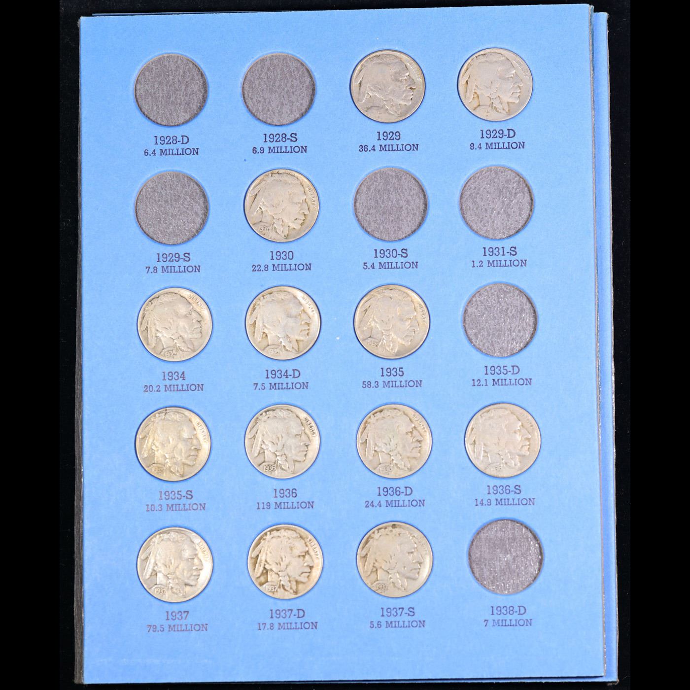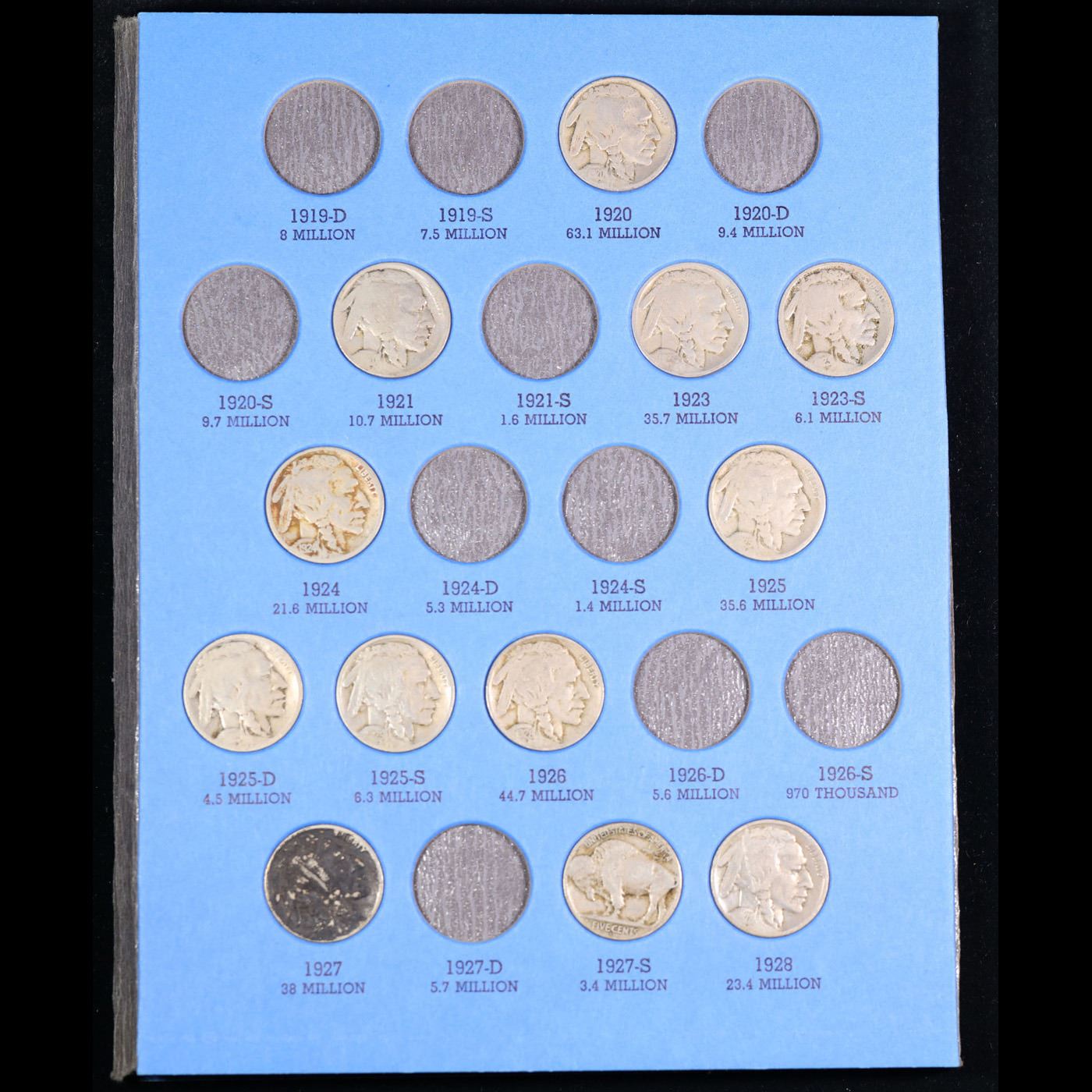 Partially Complete Buffalo Nickel Book 1918-1937 27 coins. All coins encased in a Whitman Folder. Dates range from 1918-1937. An amazing grouping of 27 coins.
