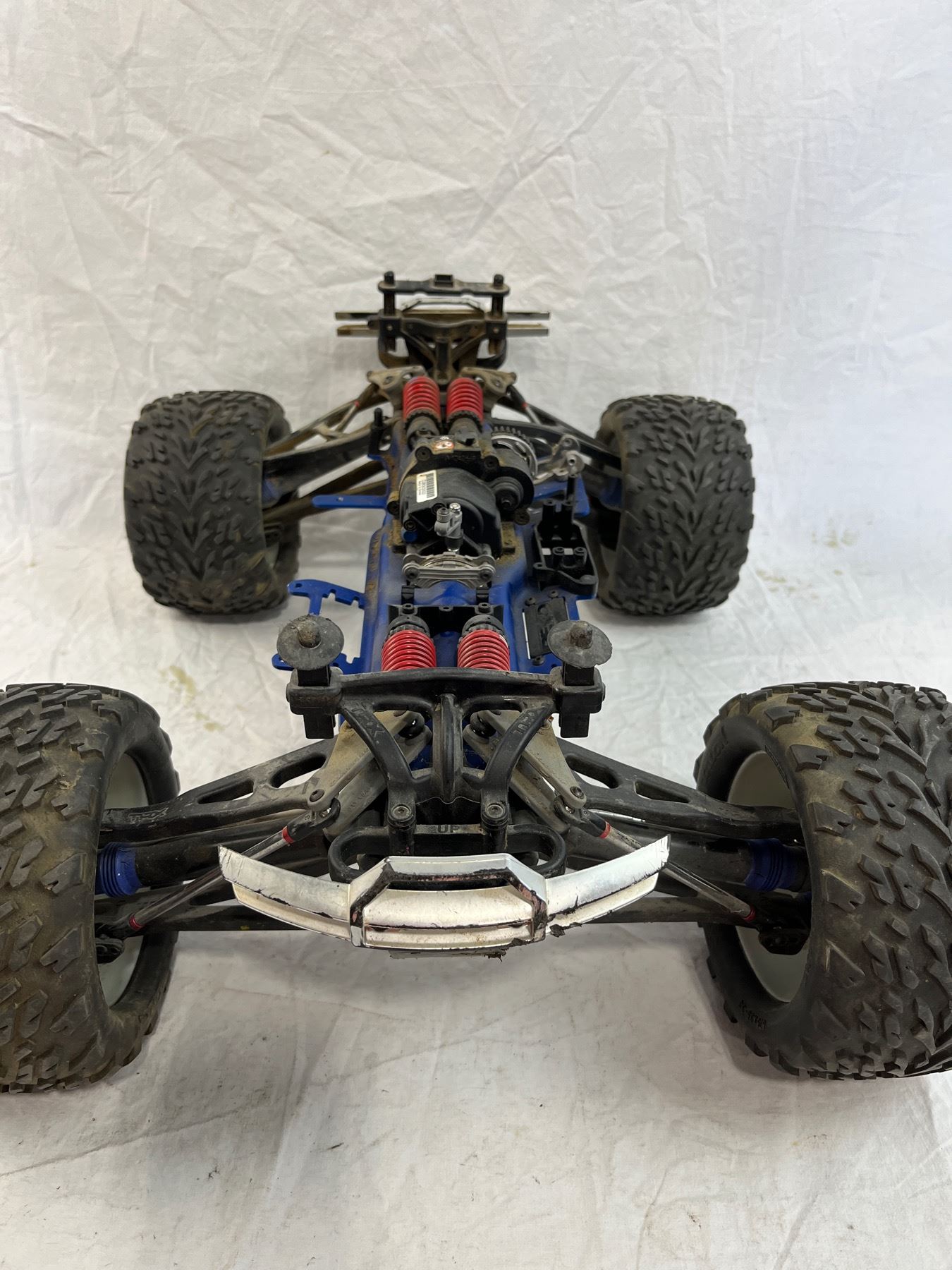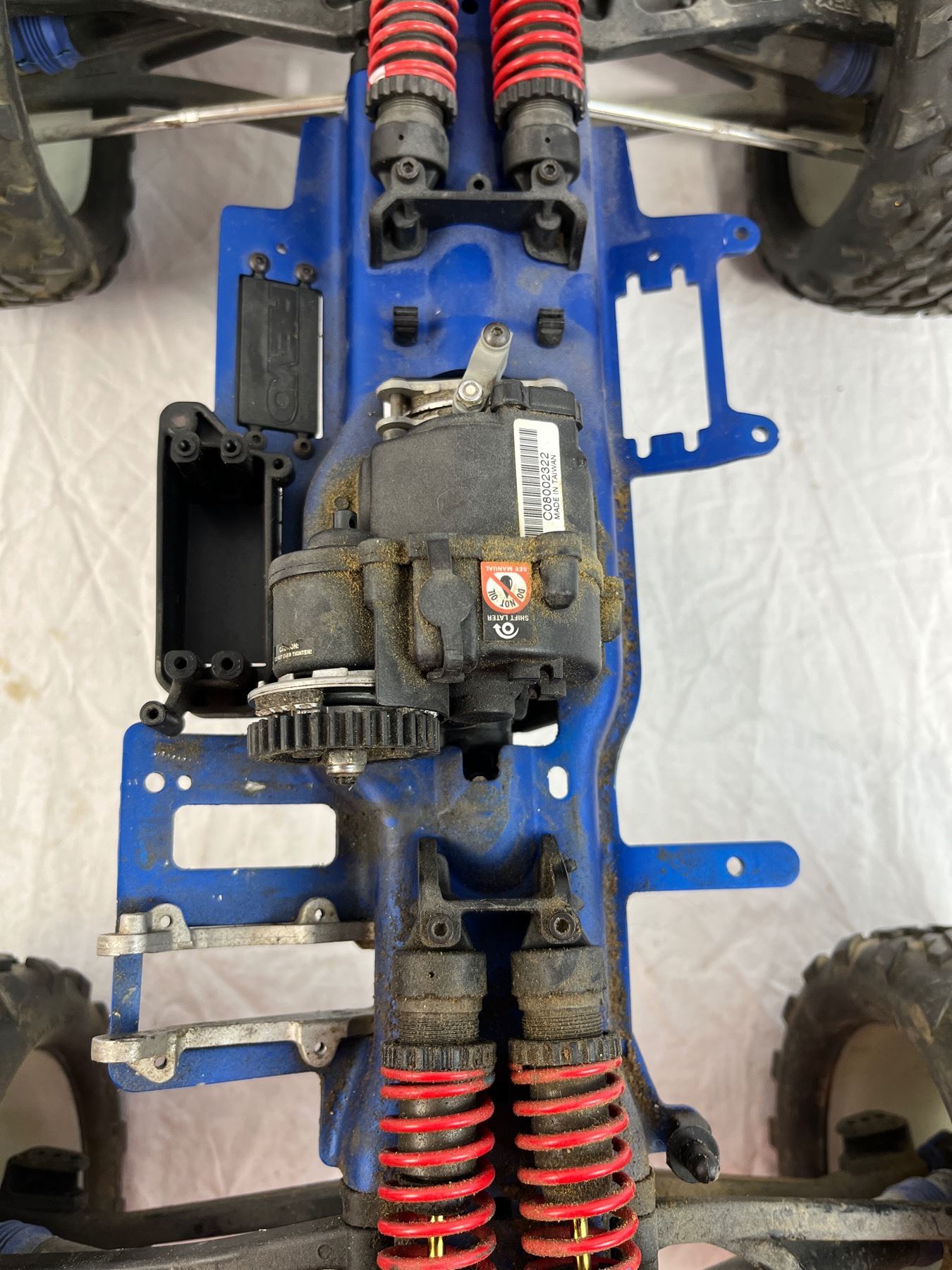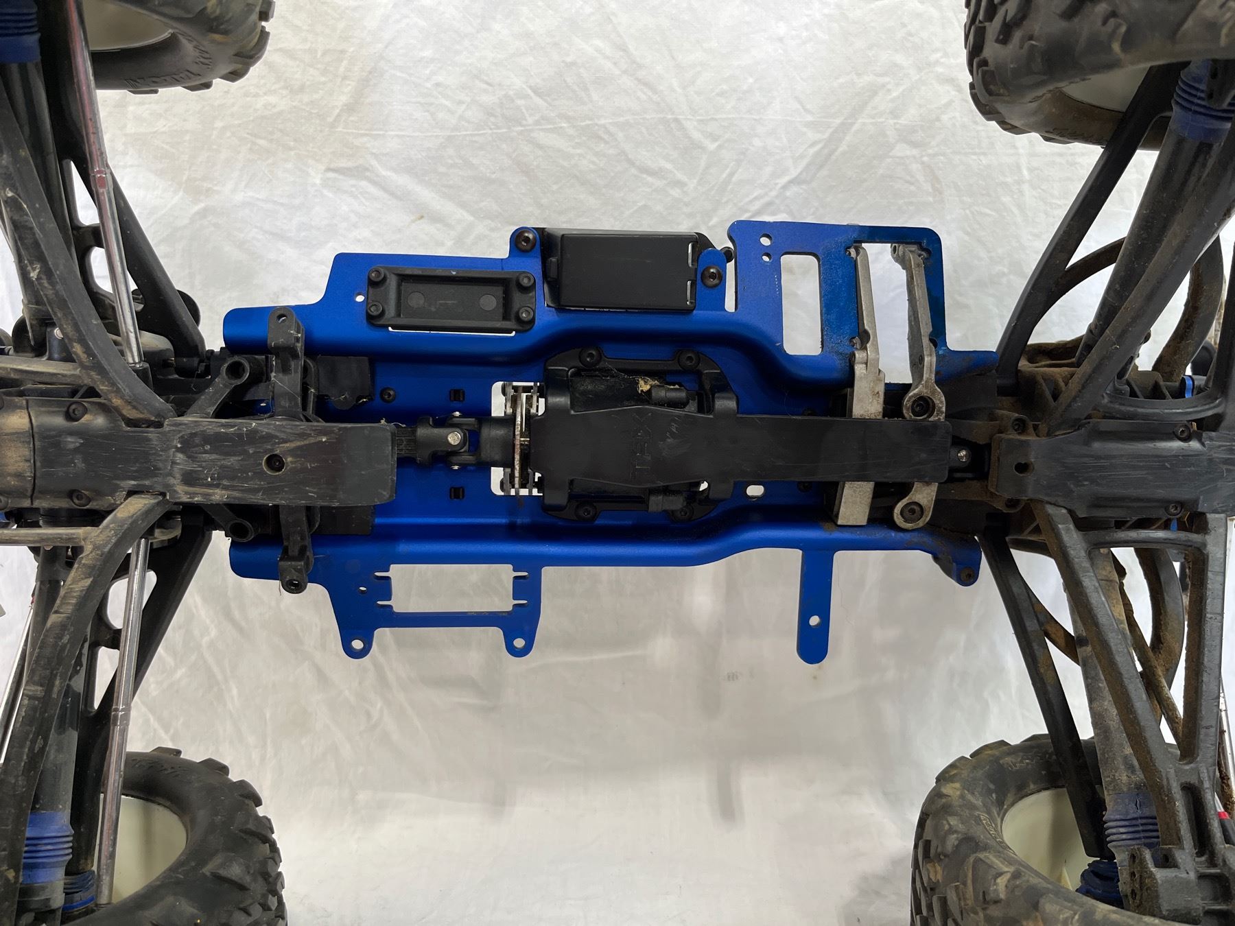 Including wheels, shocks, blue aluminum chassis and various other components.