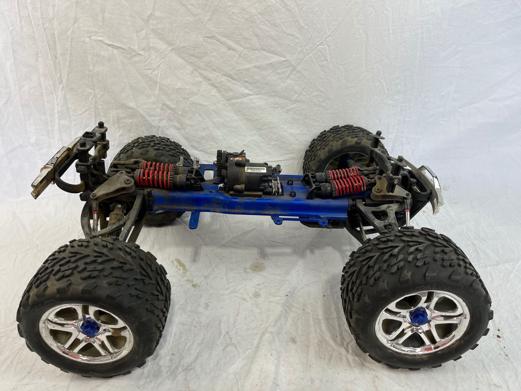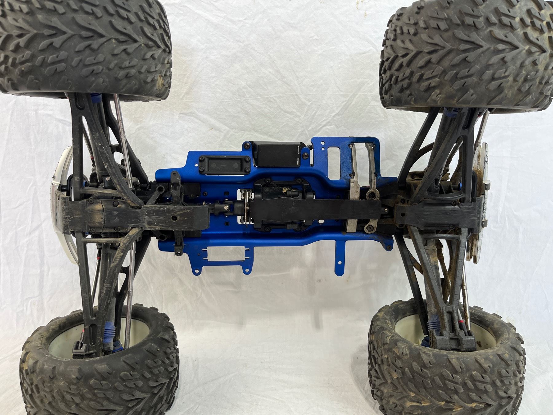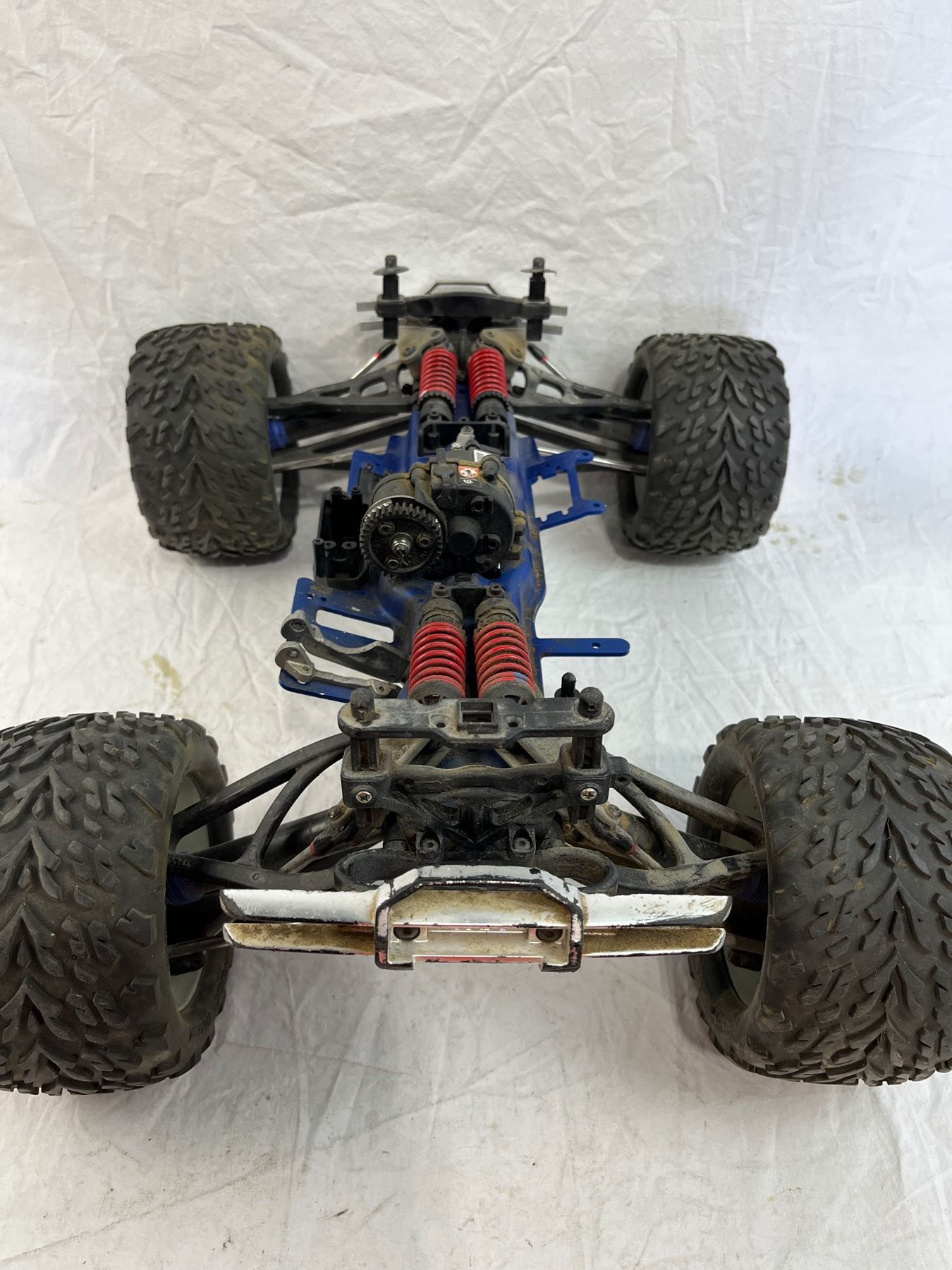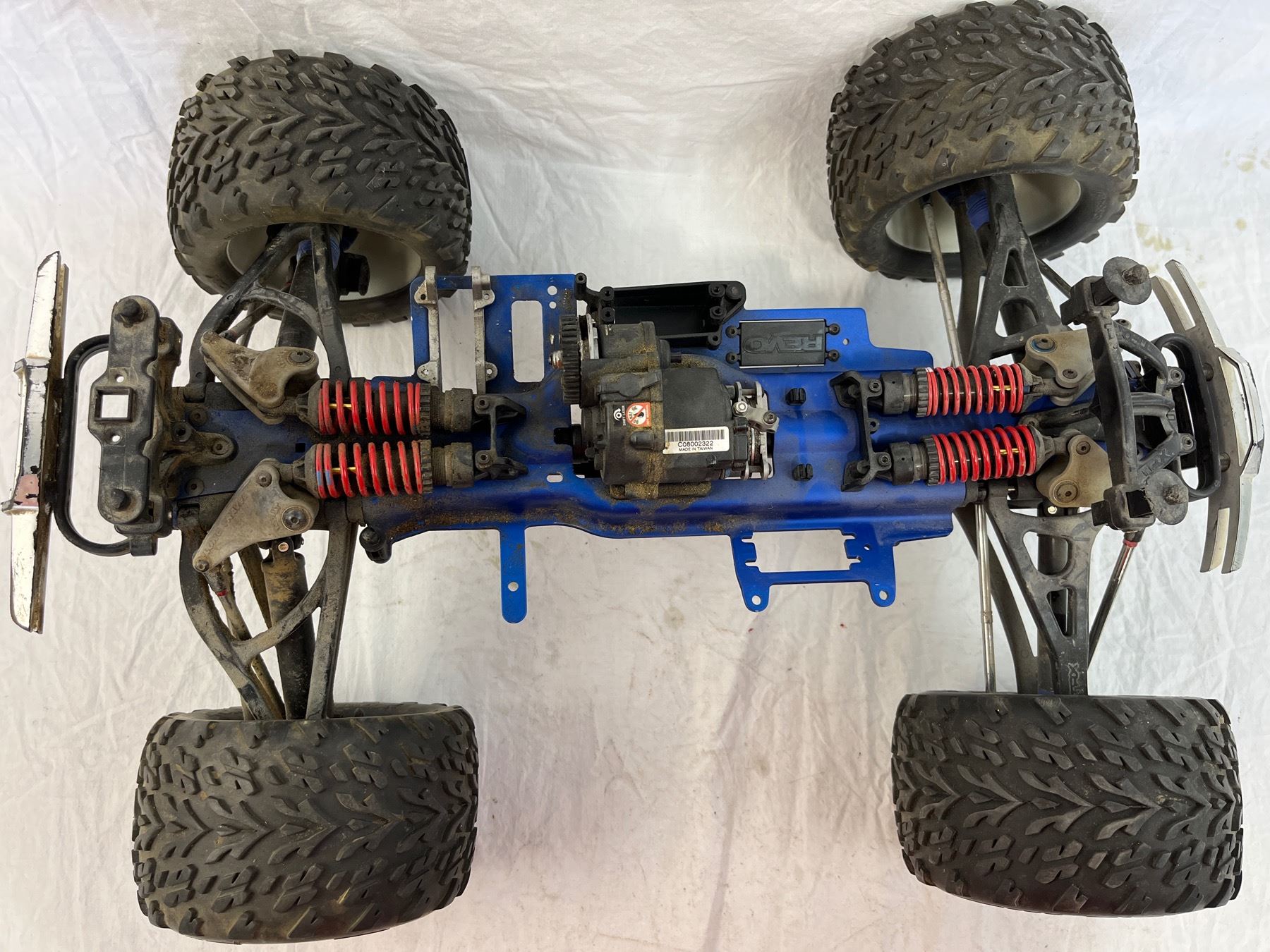 Including wheels, shocks, blue aluminum chassis and various other components.