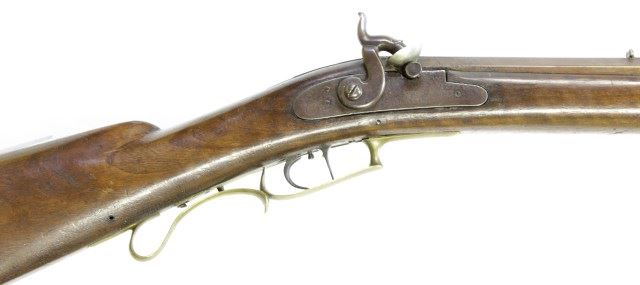 on the lock 38" barrel walnut stock, brass furniture with functioning double set triggers and action. Antique. Est. 600-900