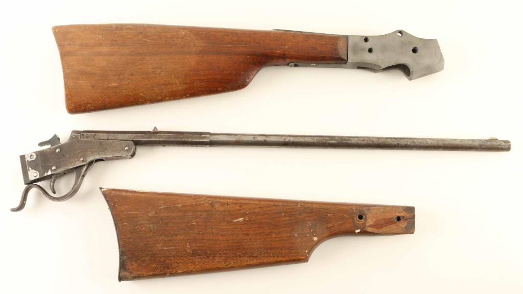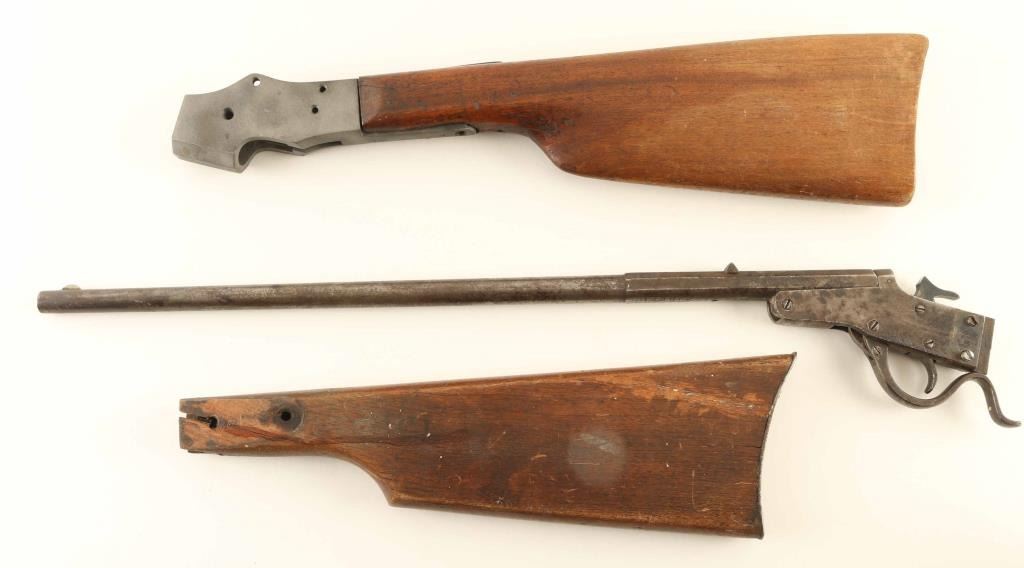 including a Stevens Maynard JR barreled action in rough shape missing some parts with wood stock, and a Stevens Model 1915 Favorite receiver in-the-white with wood stock.