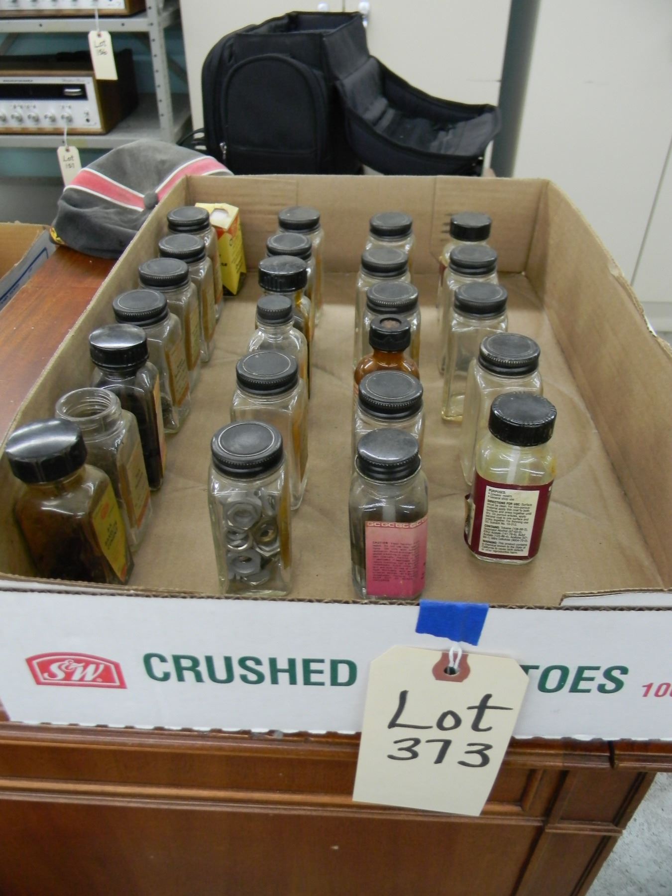25 display bottles of mostly General Cement radio "repair" items. Great for display. Most empty, but not all