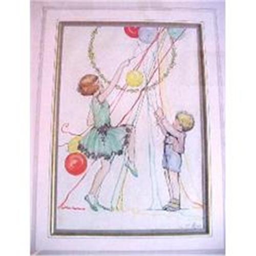 Beautiful watercolour of a boy and a girl playing with balloons by the artist Louisa M. Hine (Royal Illustrators Academy). The painting has been framed and mounted sympathetically. Signed. More detailed photos on request.