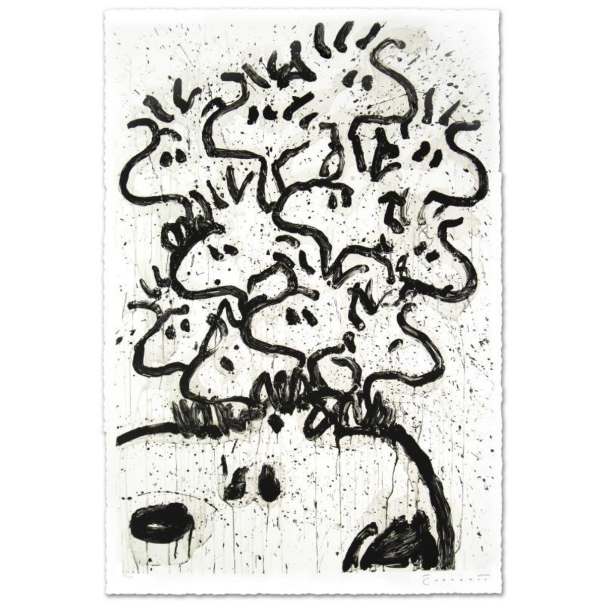 "Party Crashers" is a limited edition hand pulled original lithograph on museum quality deckle-edge paper, numbered and hand signed by Tom Everhart. This is one of the final Everhart editions to be created on a rare, antique Marinoni Voirin lithograph press that dates back to the 1800's. Includes certificate of authenticity. Measures approx. 31" x 45.5" (with border); 28.5" x 42" (image). Reference #: 198213.