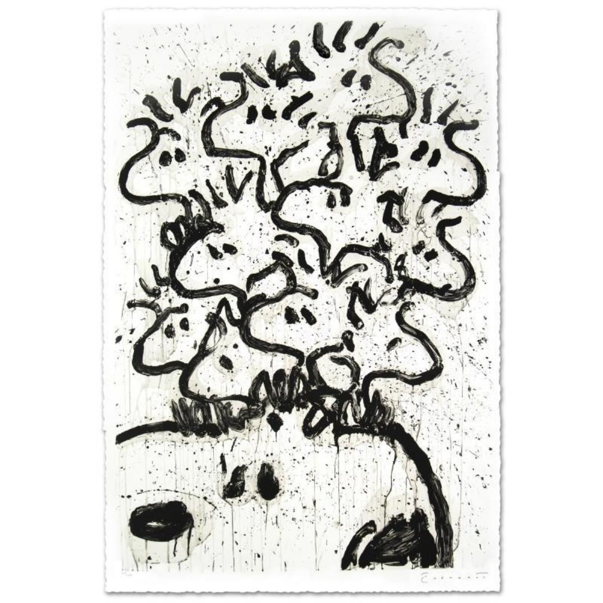 Party Crashers by Everhart, Tom. "Party Crashers" is a limited edition hand pulled original lithograph on museum quality deckle-edge paper, numbered and hand signed by Tom Everhart. This is one of the final Everhart editions to be created on a rare, antique Marinoni Voirin lithograph press that dates back to the 1800's. Includes certificate of authenticity. Measures approx. 31" x 45.5" (with border); 28.5" x 42" (image).