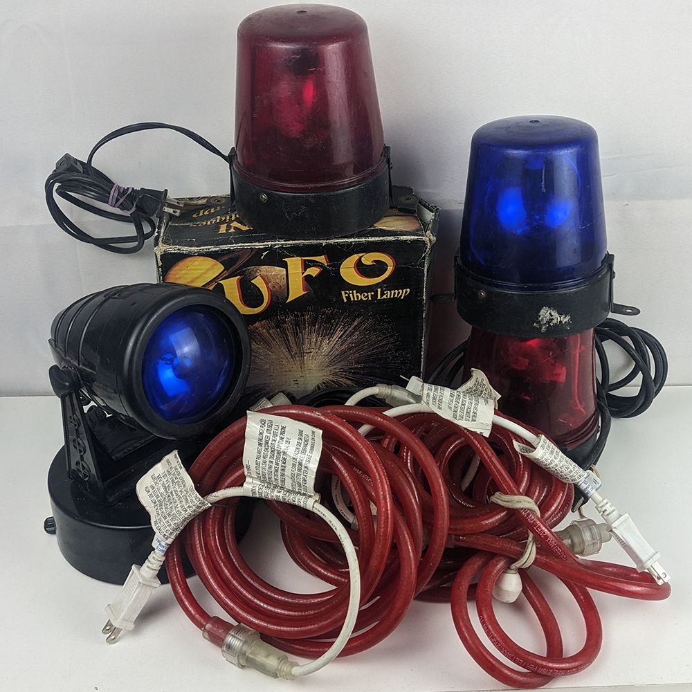 Includes 3 Rotating Beacon Lights, Strip Lights, UFO Fiber Light and Rotating Light