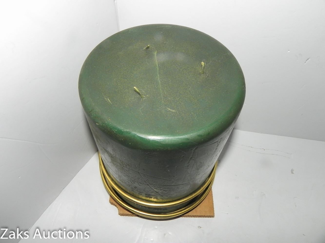 Partylite 6" 3 Wick Green Candle on Gold Style Base In Box