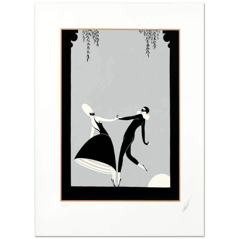 "Pas Du Duex" is a limited edition serigraph on paper, numbered and hand signed by the artist. Includes Certificate of Authenticity! Measures approx. 22.5" x 28.5" (with border), 17" x 21" (image). ** Please note: Due to the age of this piece and the delicate nature of the paper it may have some slight imperfections. **